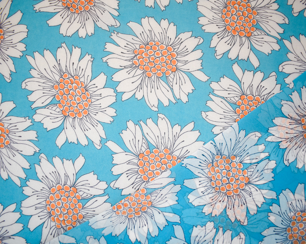 Blue-White-Multi Poly Floral Printed Chiffon Woven Fabric