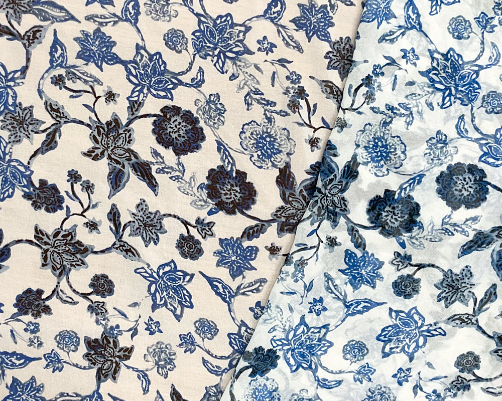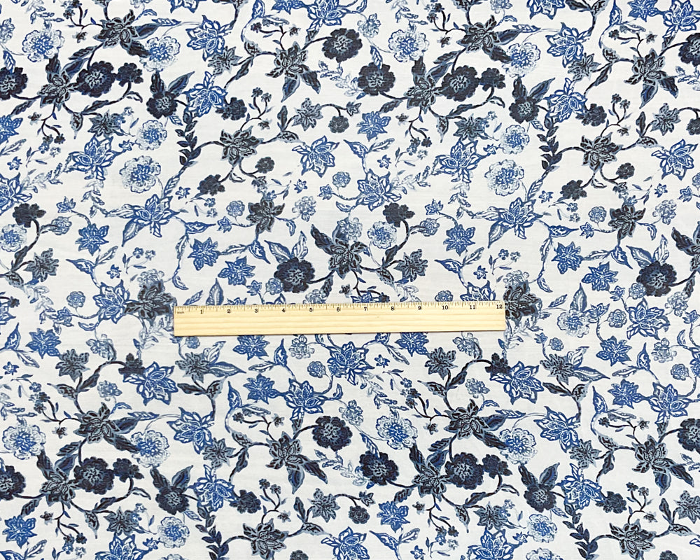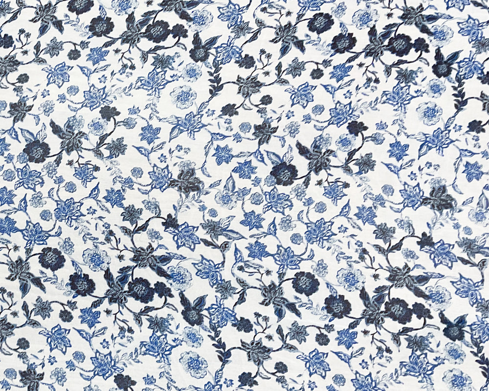 Blue-White Poly Floral Printed Chiffon Woven Fabric