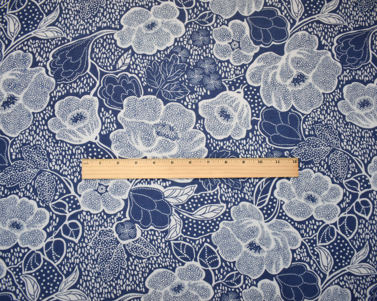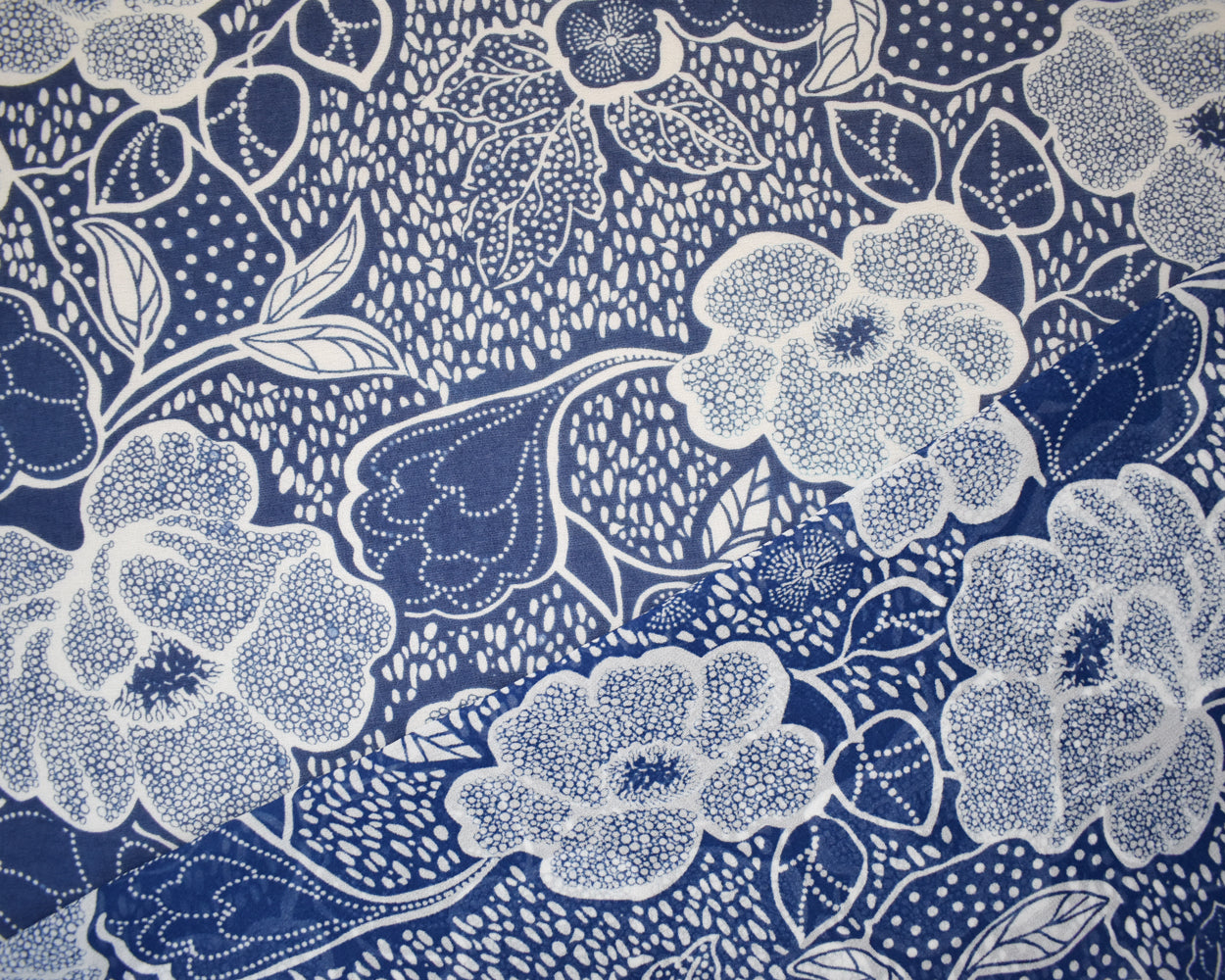 Blue-White Poly Floral Printed Pebble Chiffon Woven Fabric