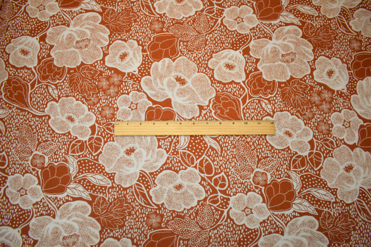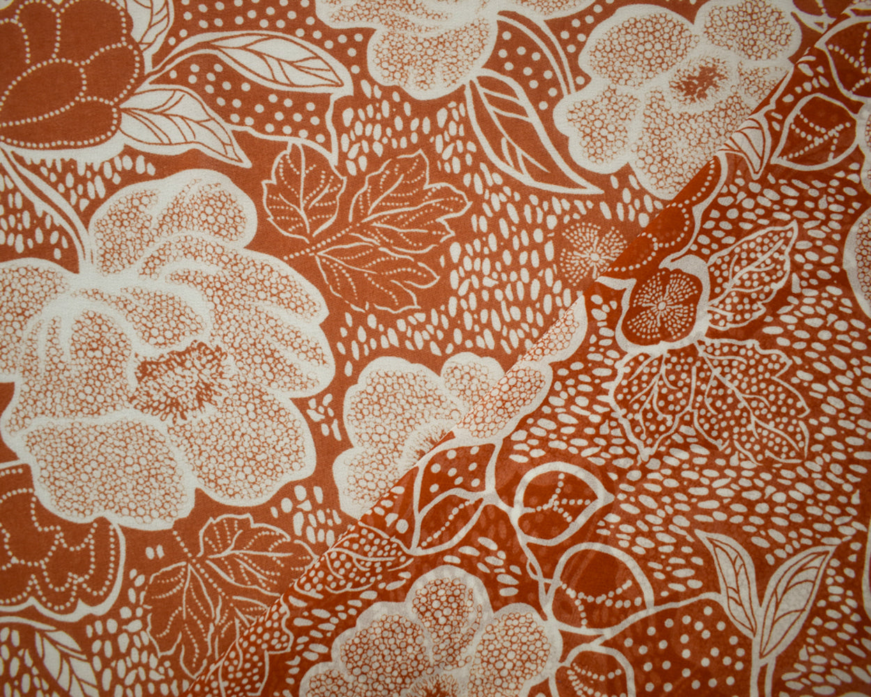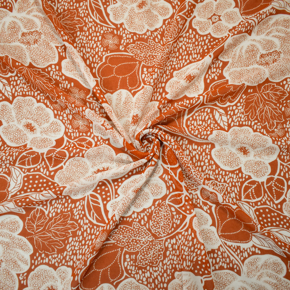 Brown-White Poly Floral Printed Crepe Chiffon Woven Fabric
