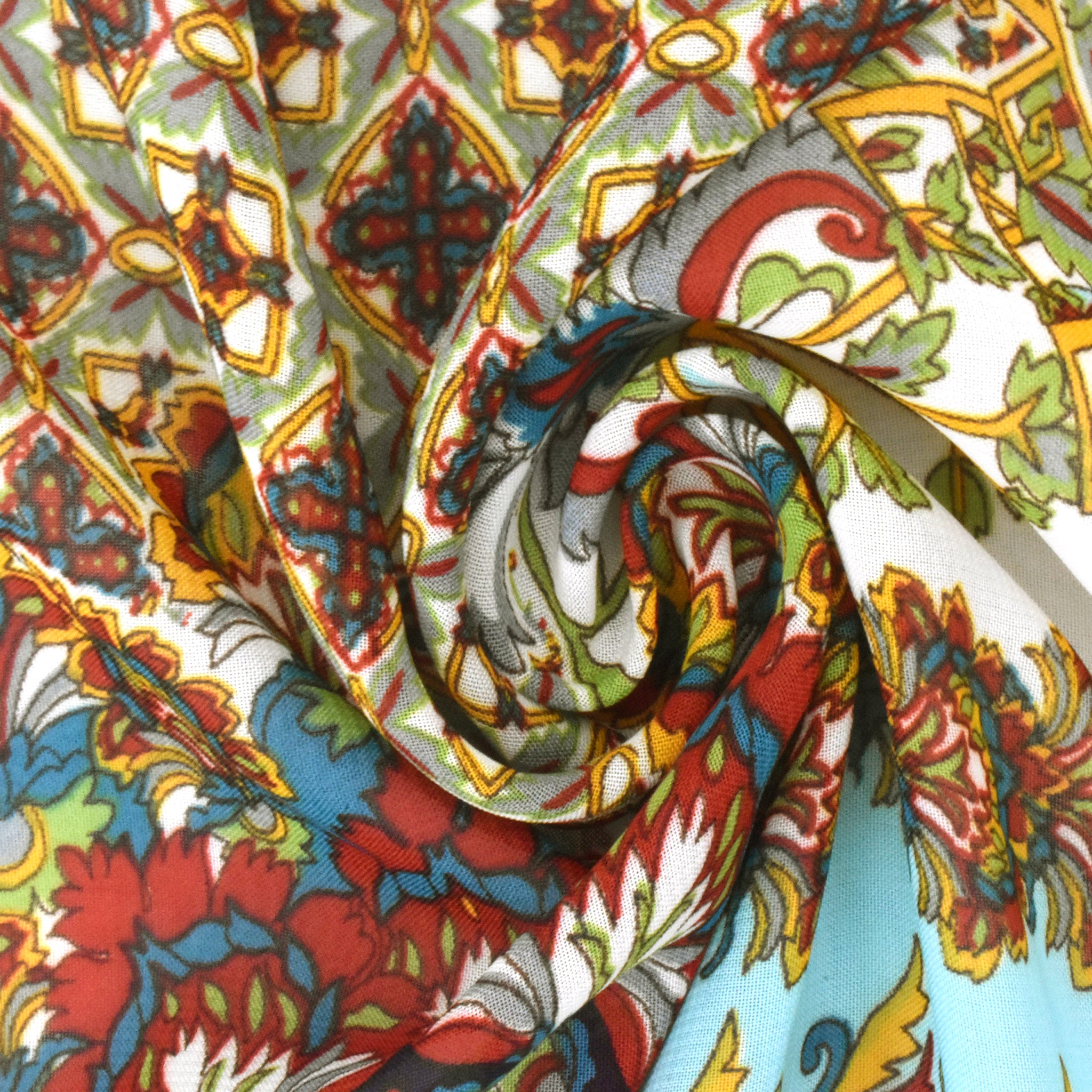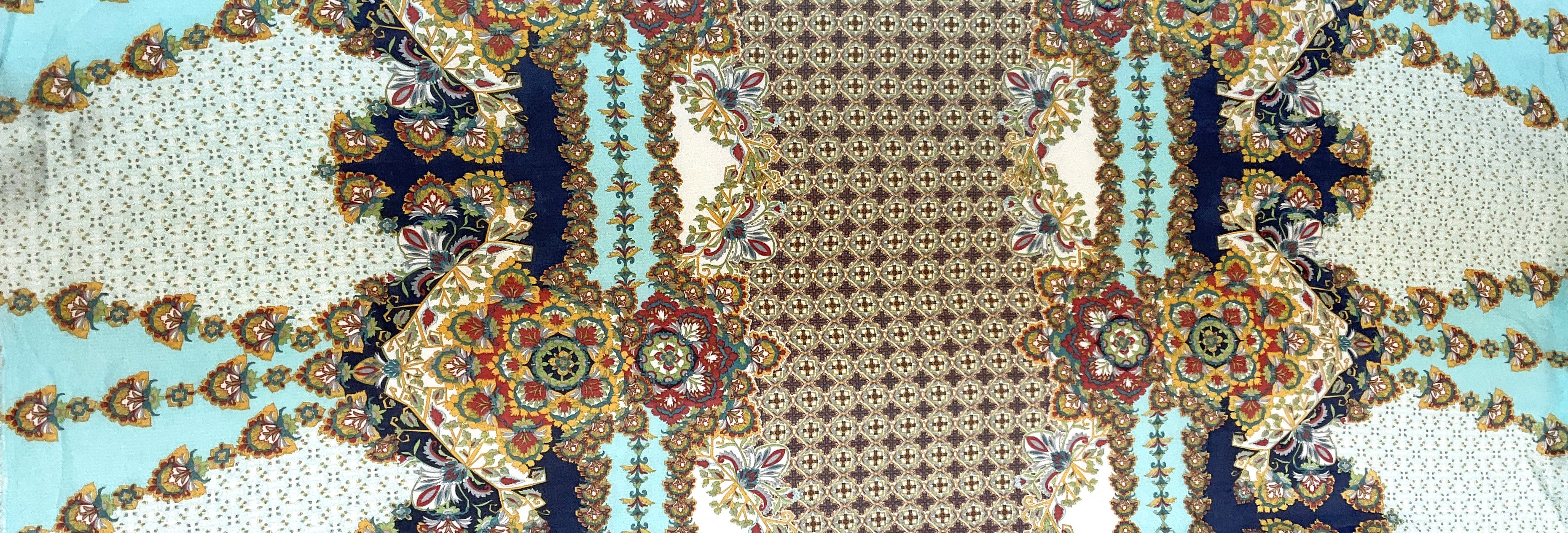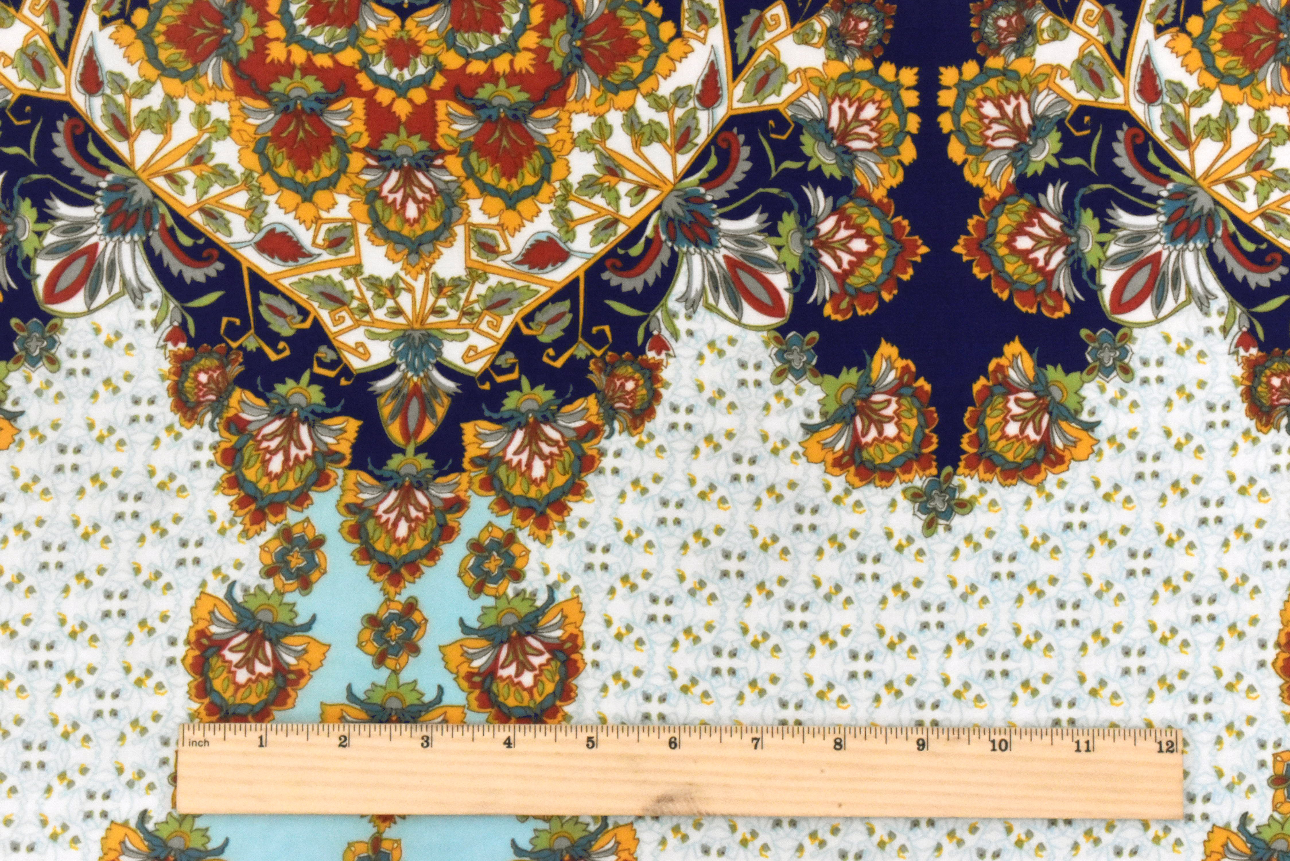 Clean Teal-Blue-Multi Moroccan Floral Border Poly Chiffon Woven Fabric