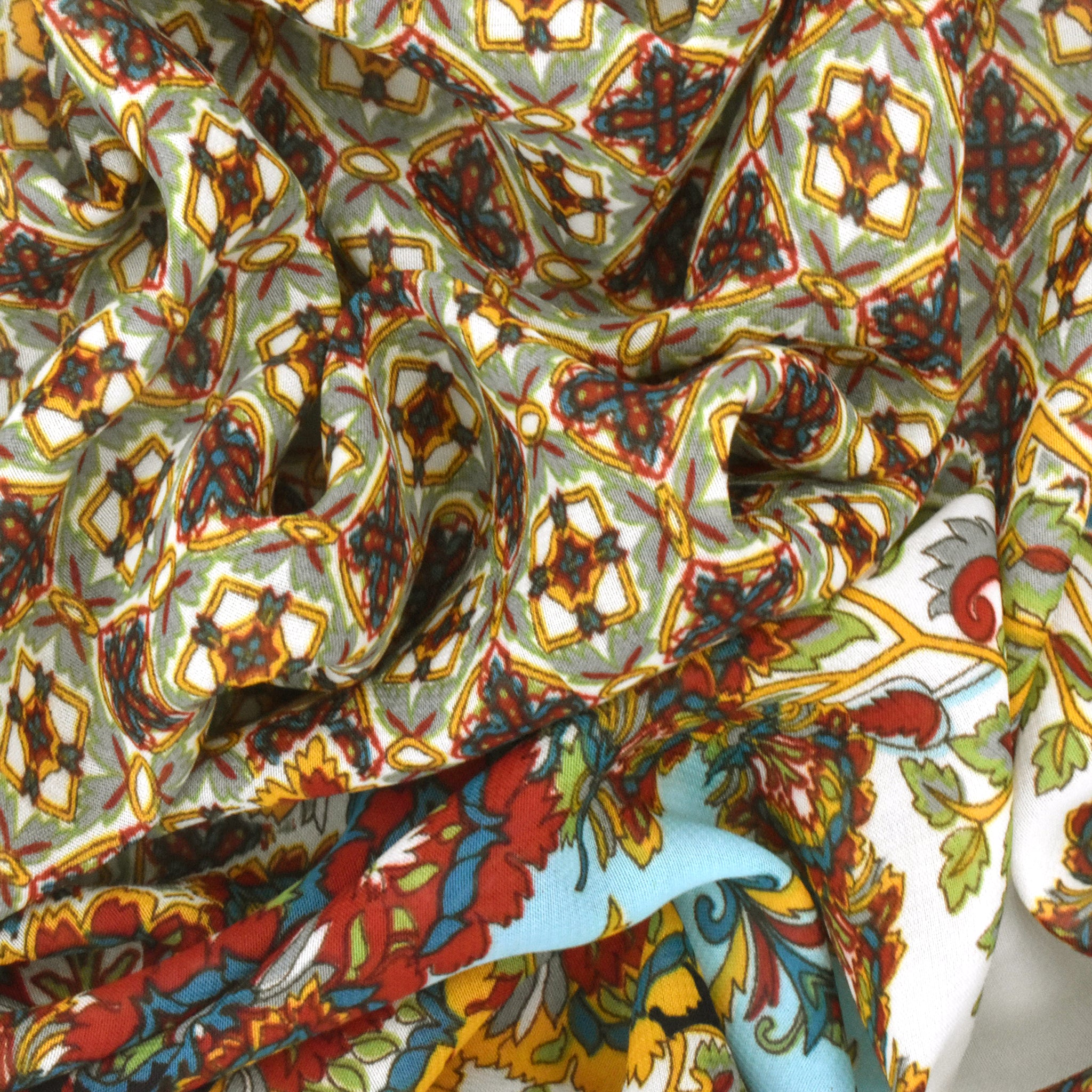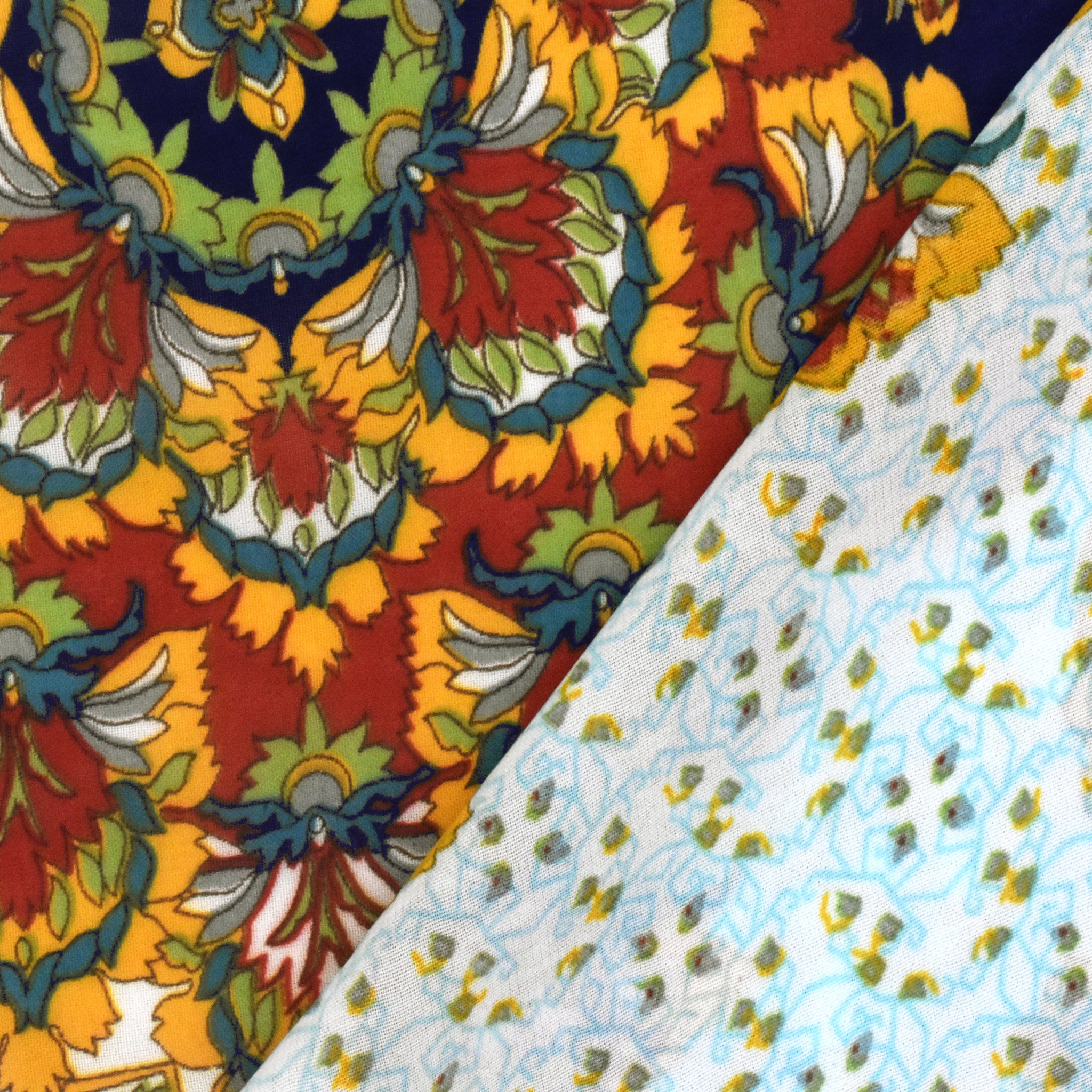 -100% polyester Moroccan floral patch bordered design pattern printed chiffon woven fabric