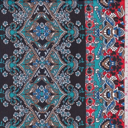 Dark Navy/Teal Multi Stylized Stripe Chiffon Fabric