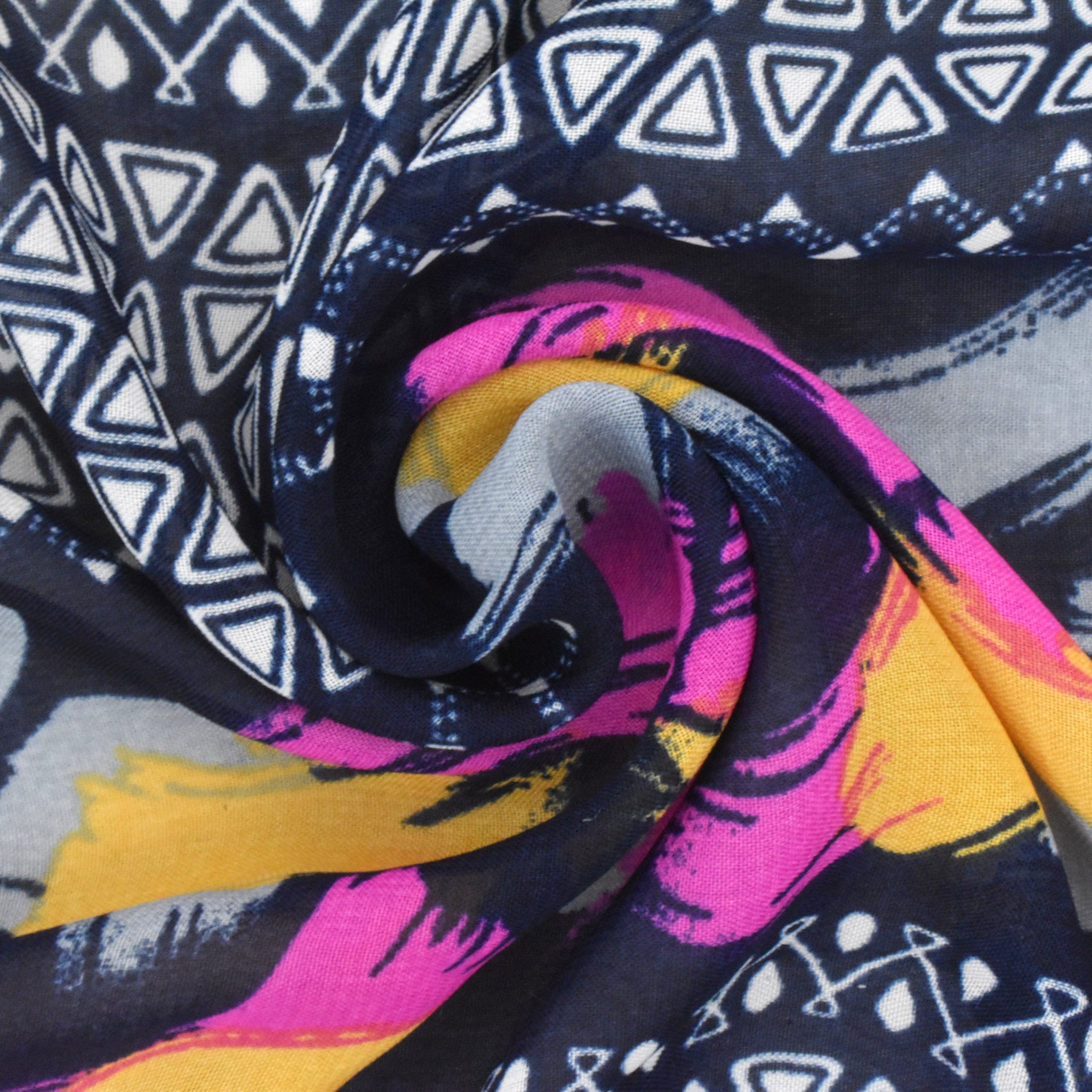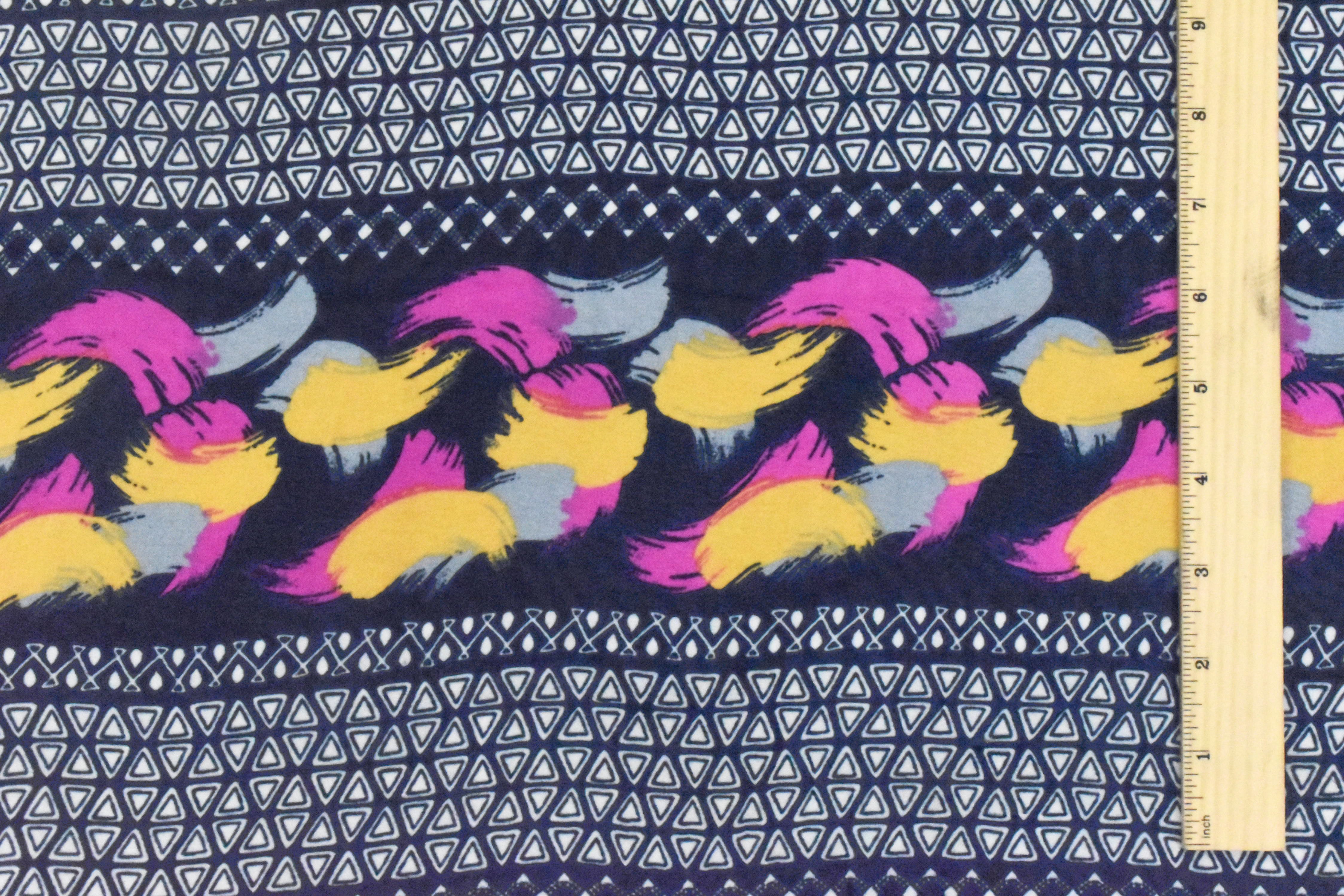 Navy Blue-Multi Painting And Aztec Stripe Printed Poly Chiffon Woven Fabric