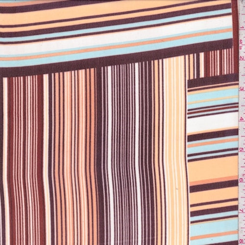 Peach/Plum/Blue Stripe Block Chiffon Fabric