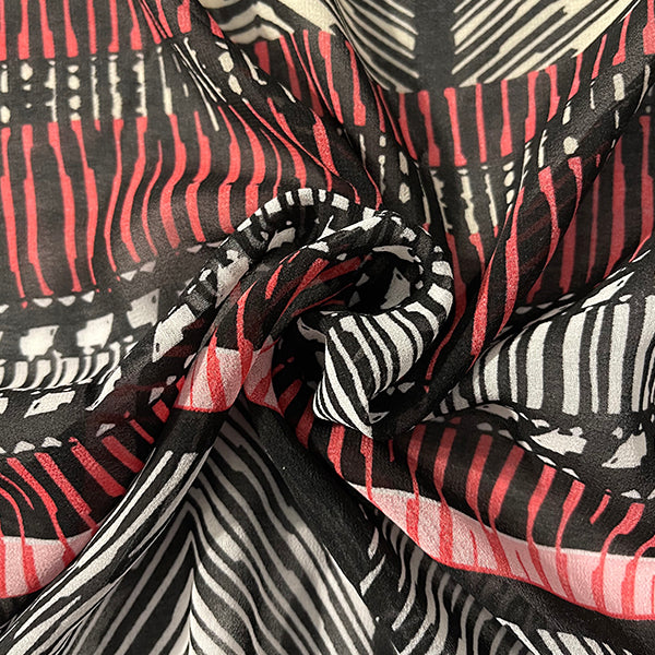 -Black, White, & Pink Multi Stripe Print Chiffon Fabric