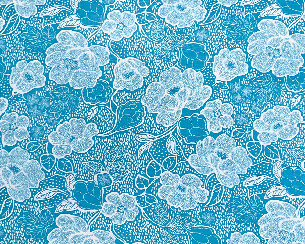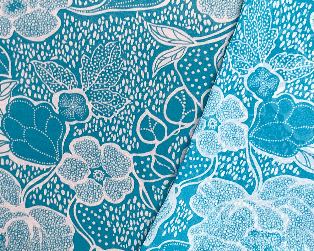 Turquoise-White Poly Floral Printed Chiffon Woven Fabric