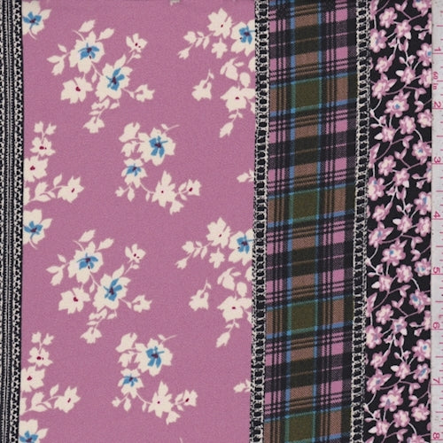1 1/2 YD PC-Black/Mauve Floral Stripe Crepe Fabric