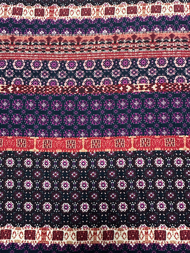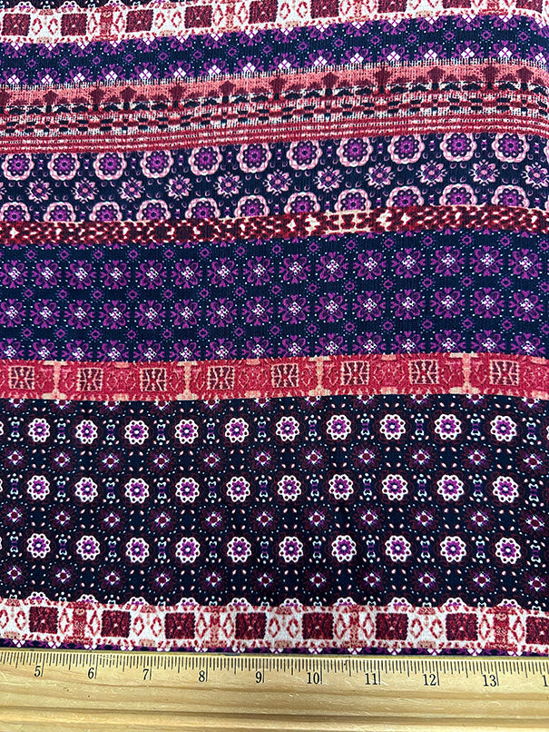1 1/2 YD PC-Magenta Multi Stripe Print High Crepe Fabric