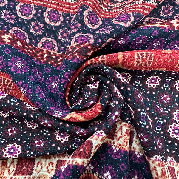 1 1/2 YD PC -Red, Ivory, Navy Blue, Pink, Gold, & Magenta Multi Horizontal Stripe Print High Crepe Fabric