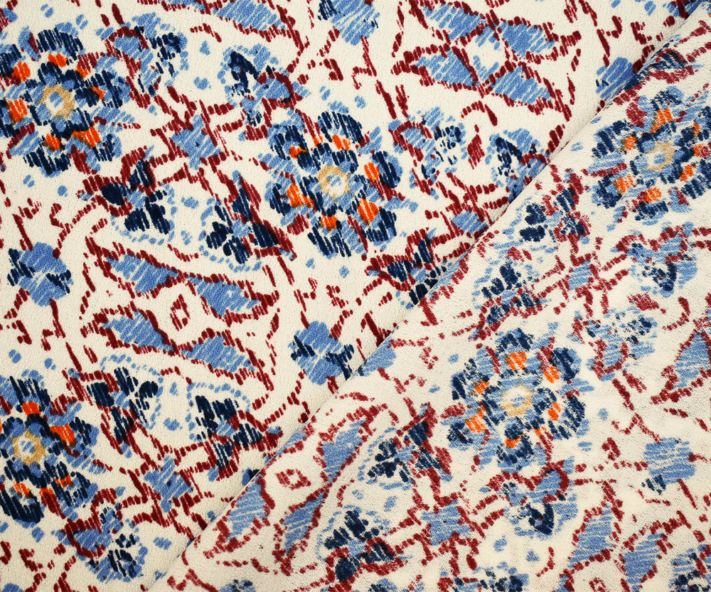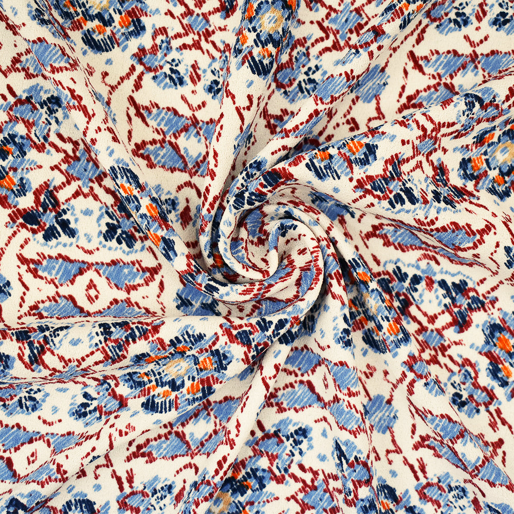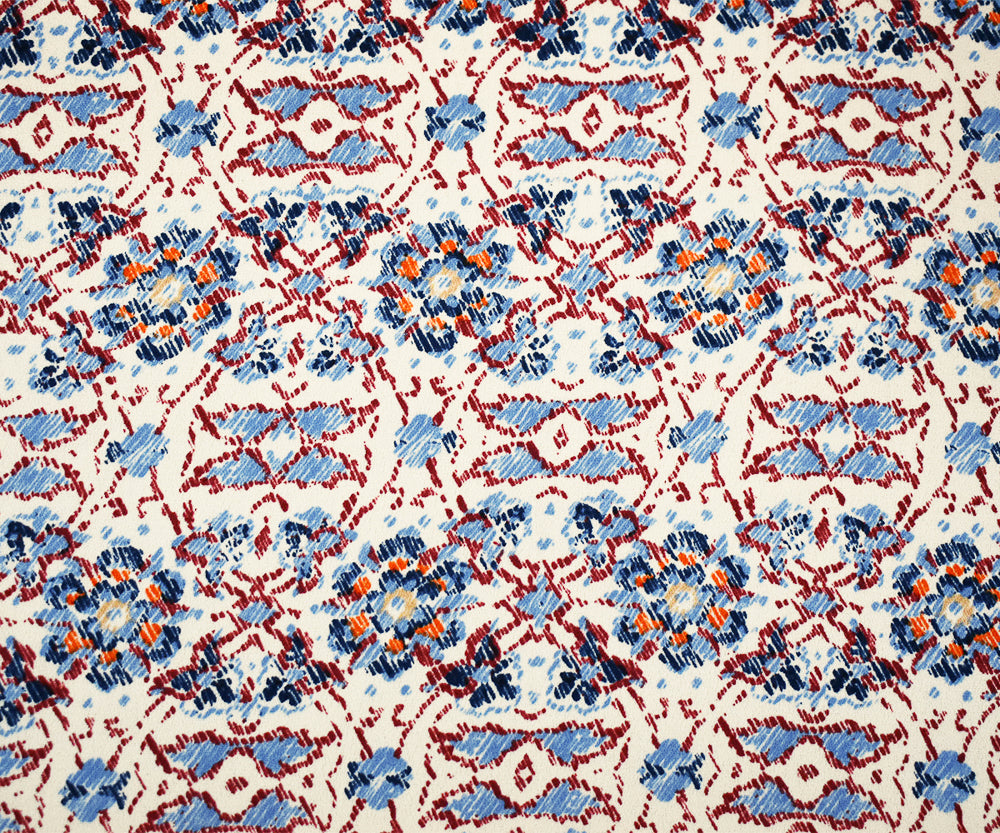 1 YD PC-Blue-Maroon-Multi Floral Border Printed Poly Crepe Momie Georgette Fabric