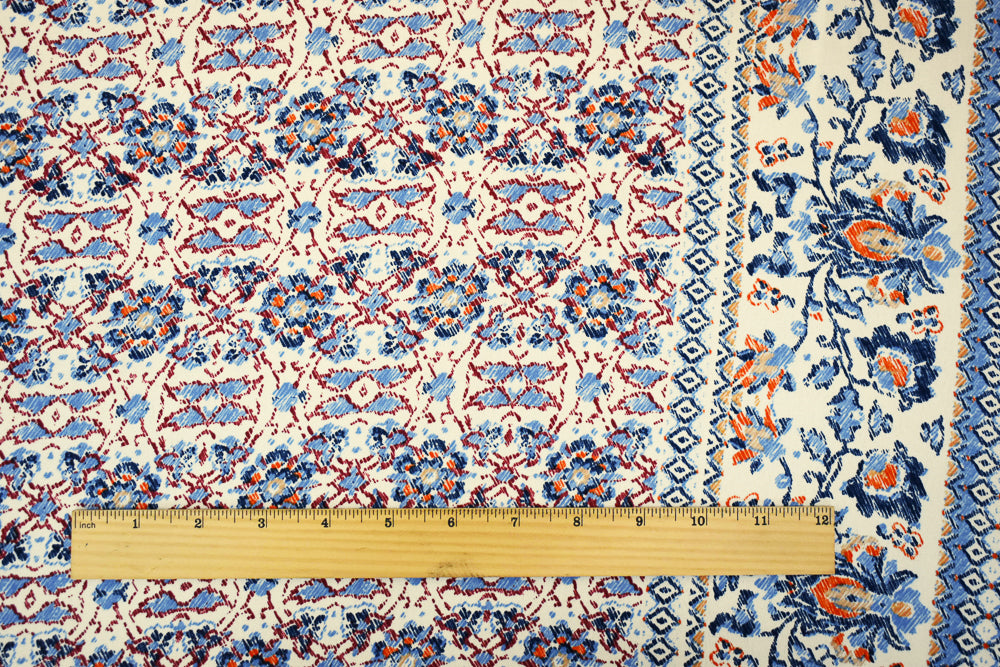 1 YD PC -100% polyester crepe momie georgette woven fabric printed with a floral bordered selvedge pattern