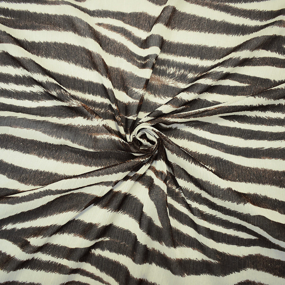 1 YD PC-Brown-Beige Poly Tiger Printed Crinkle Yoryu Chiffon Woven Fabric