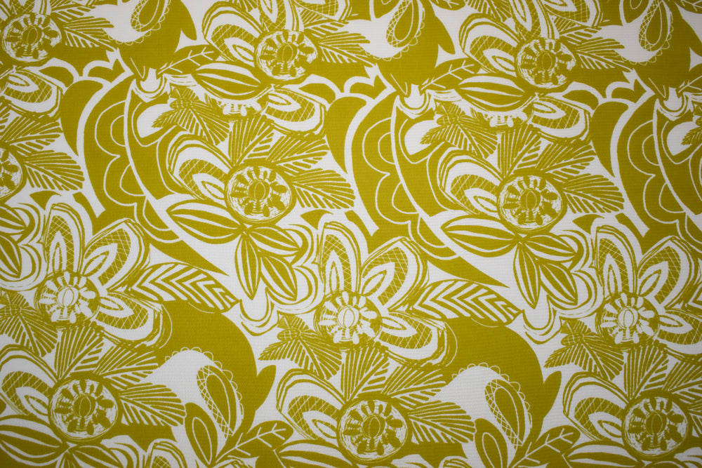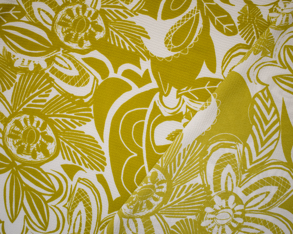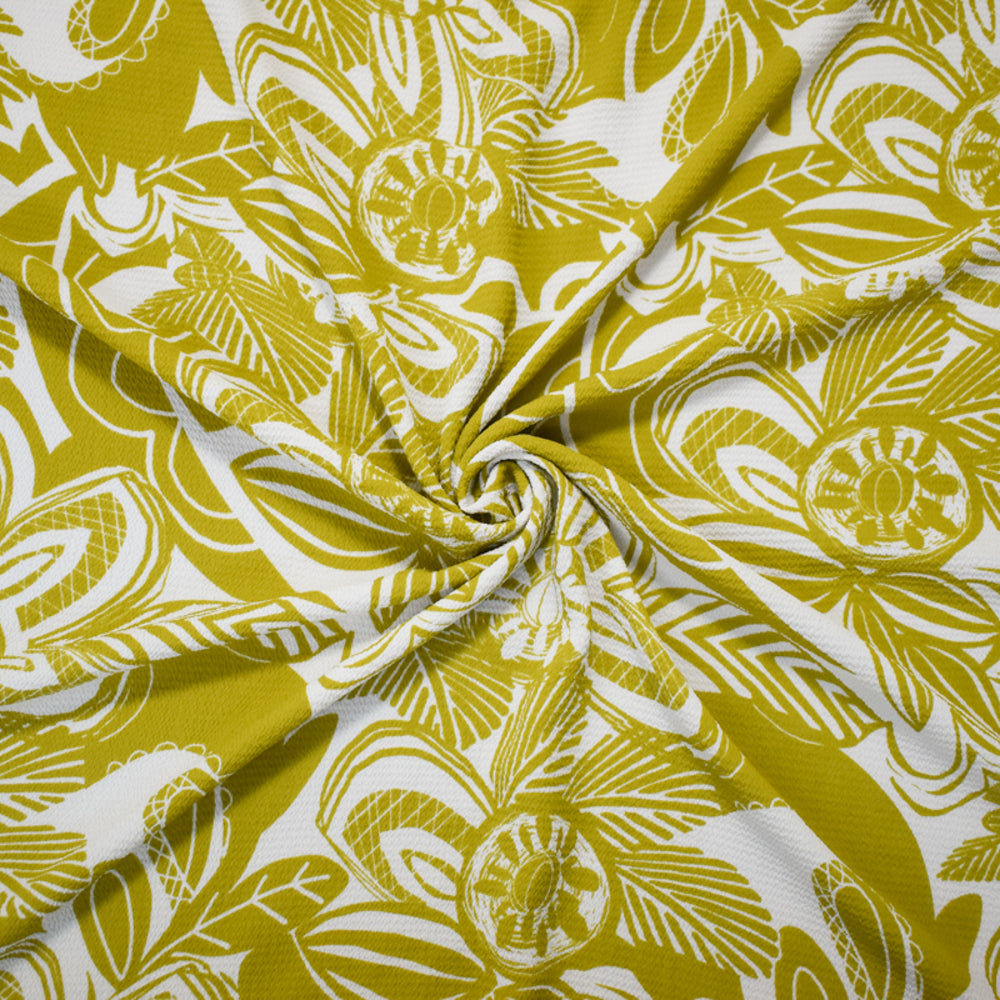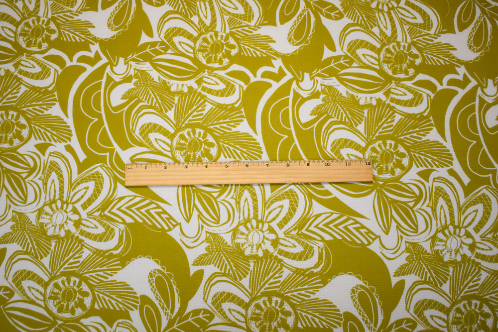 1 YD PC-Olive Green-White Poly Floral Printed Pebble Crepe Woven Fabric