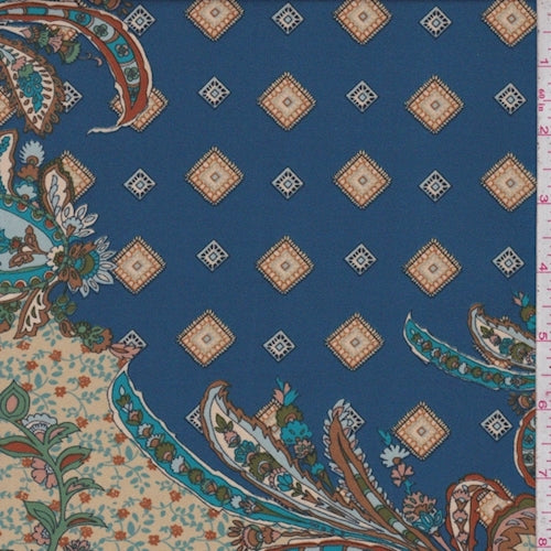 1 YD PC-Peacock/Beige Stylized Paisley Crepe Georgette Fabric