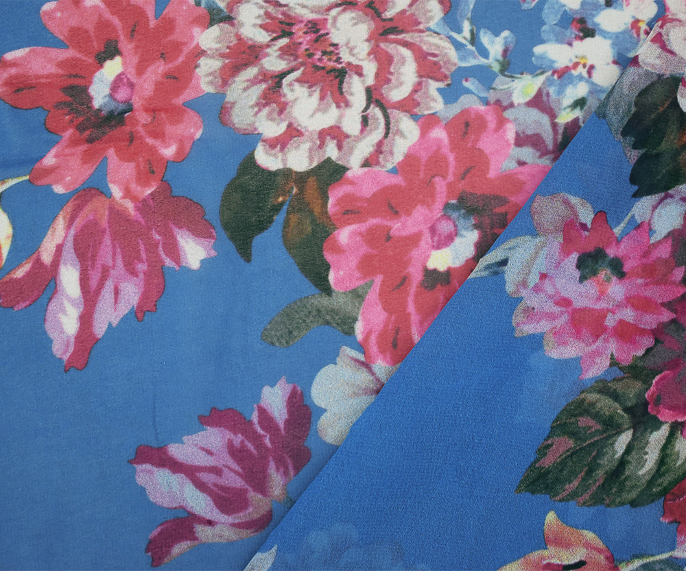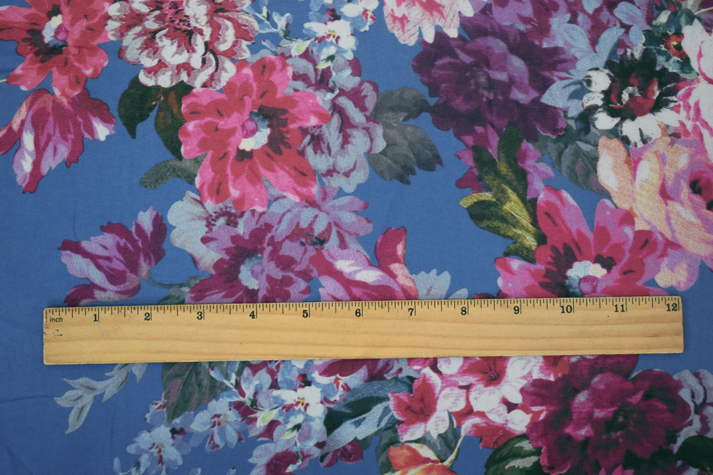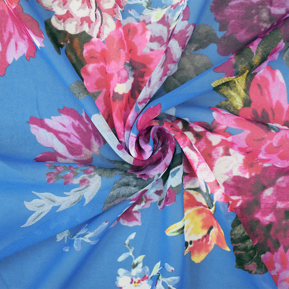 2 1/2 YD PC-Blue-Pink-Multi Floral Printed Poly Chiffon Woven Fabric
