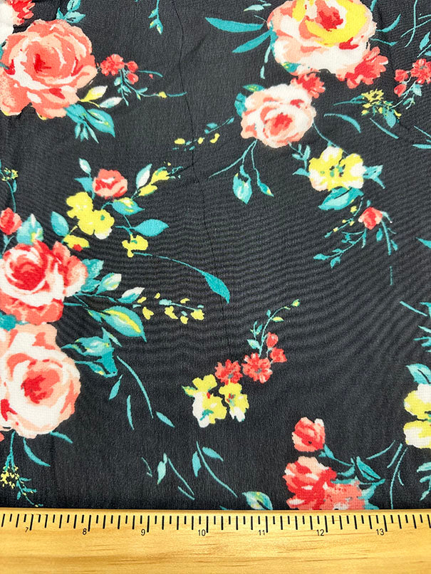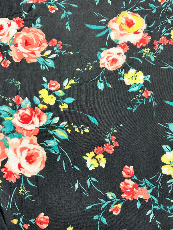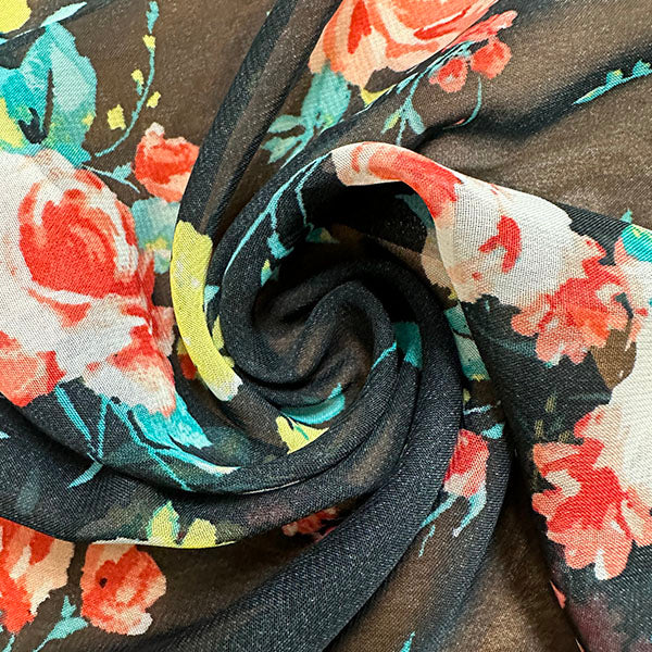 Black Floral Print Poly Chiffon Fabric