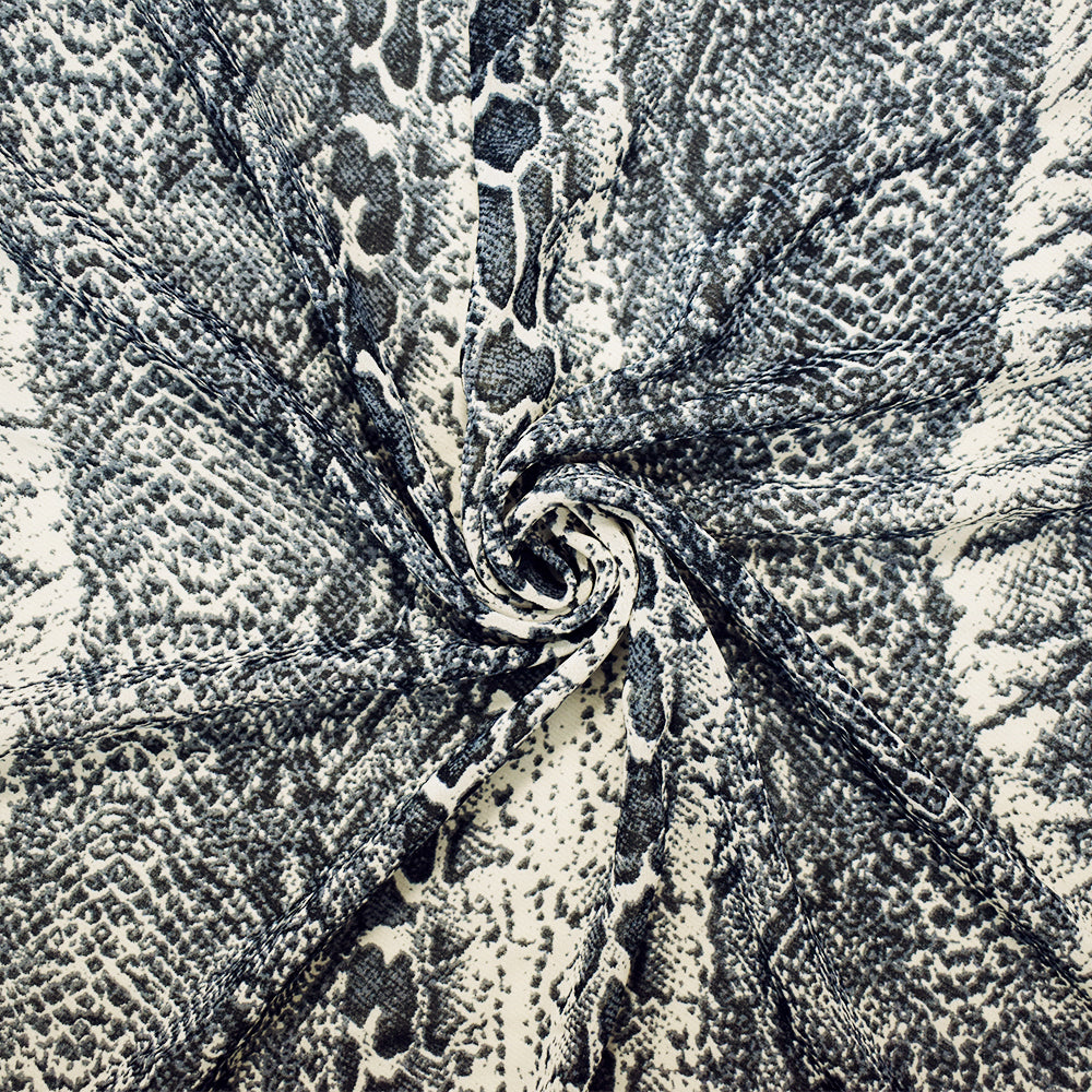 Black-Gray-Ivory Poly Reptile Printed Chiffon Woven Fabric