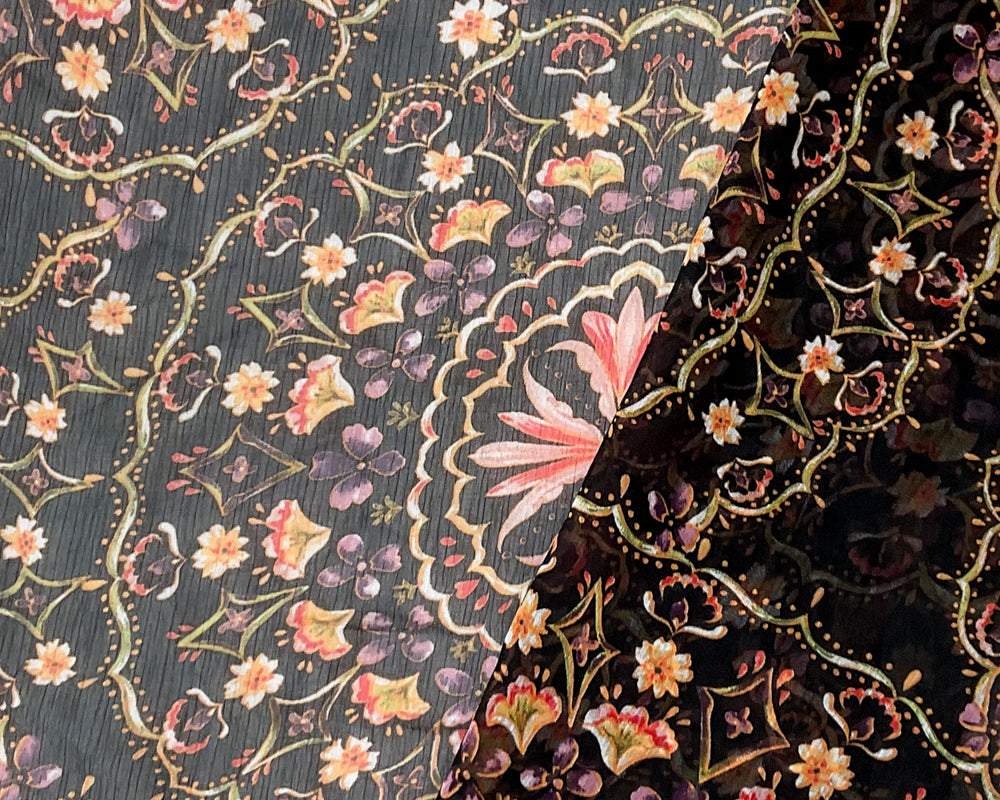 Black-Multi Poly Floral Printed Yoryu Chiffon Woven Fabric
