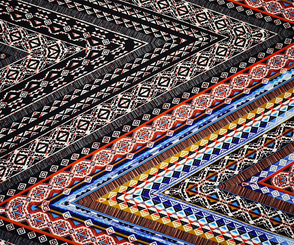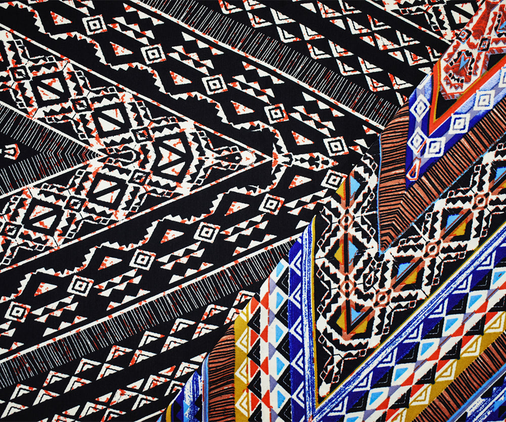 Black-Orange-Multi Poly Aztec Printed Faille Woven Fabric