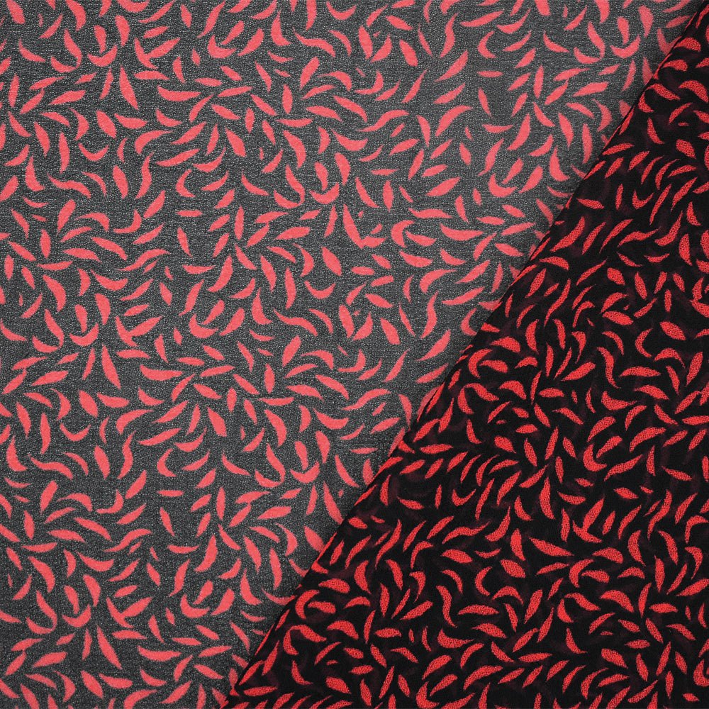 Black-Red Abstract Printed Poly Chiffon Woven Fabric