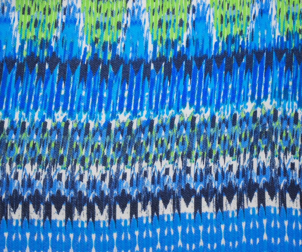 Blue-Lime-Multi Poly Abstract Ikat Printed Chiffon Woven Fabric