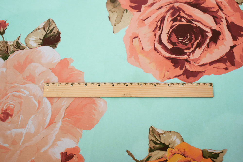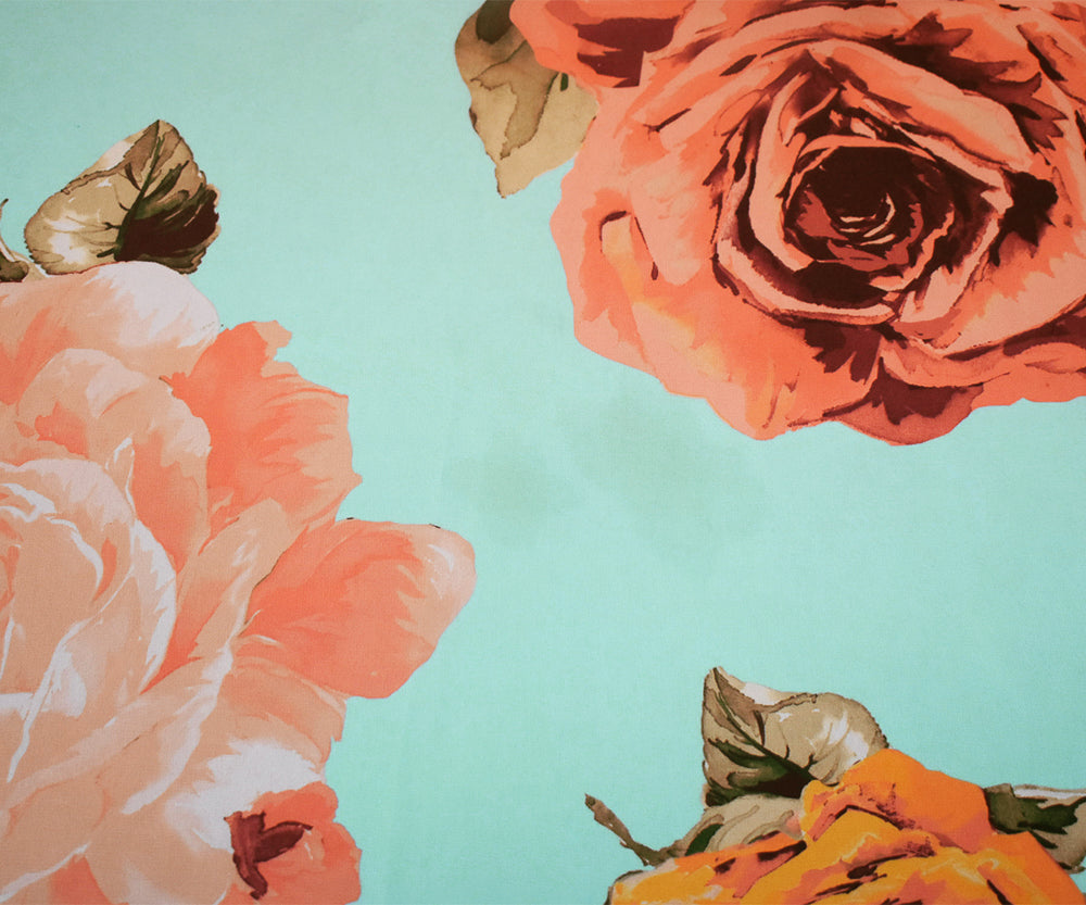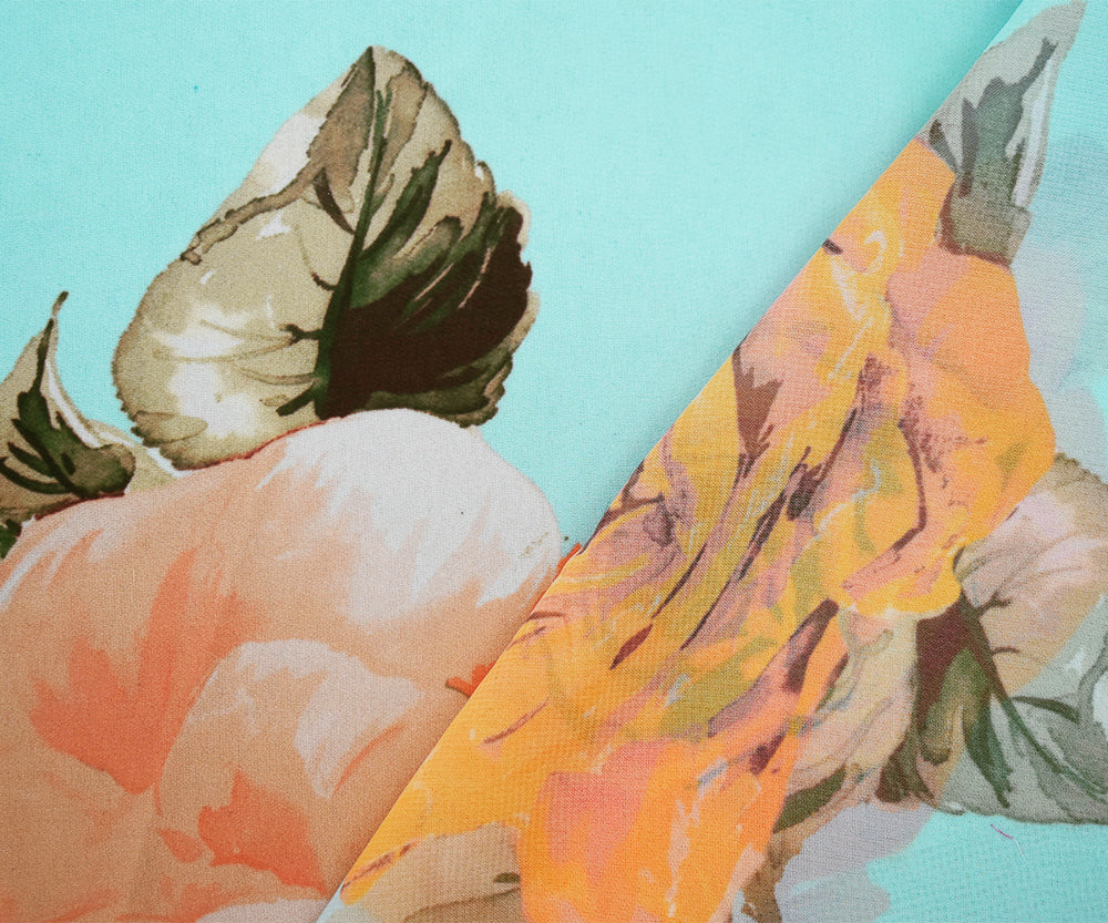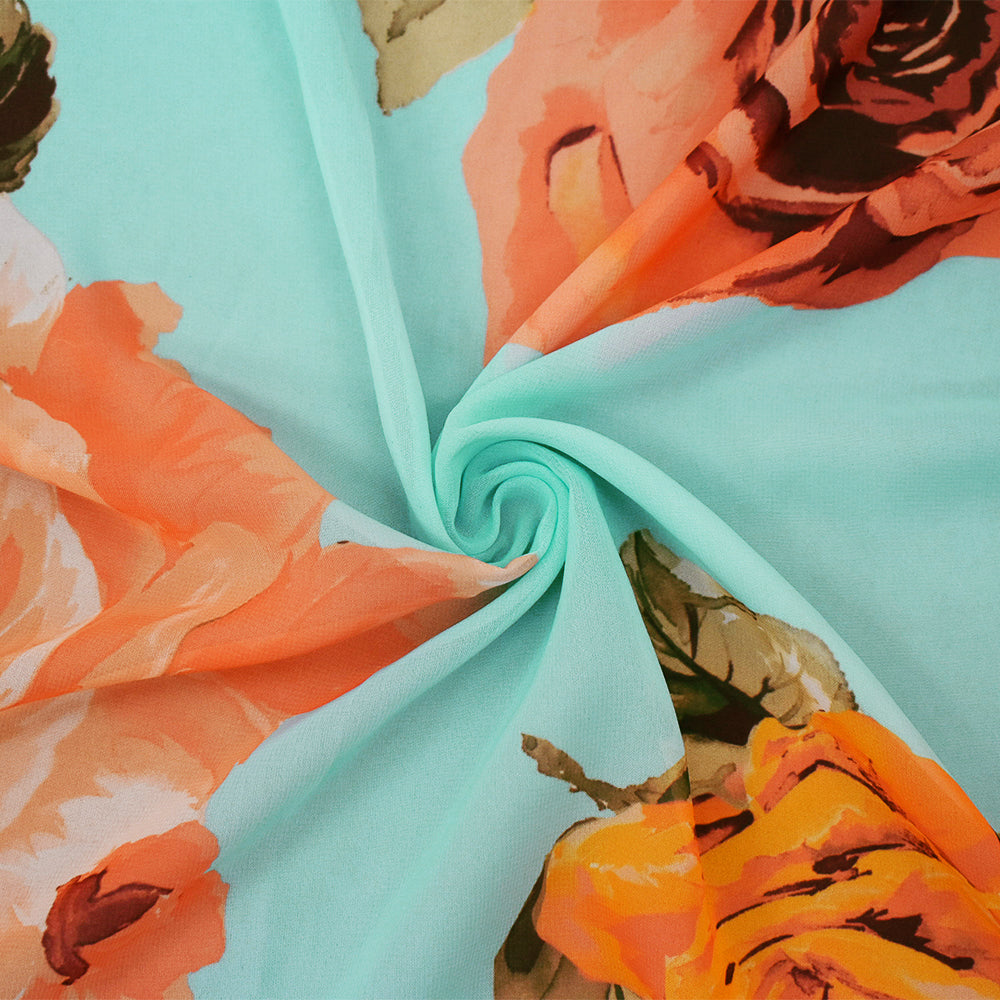 Blue-Orange-Multi Floral Printed Poly Chiffon Woven Fabric