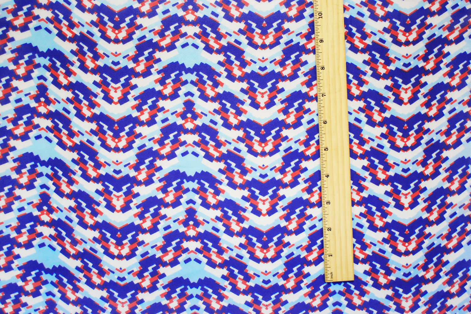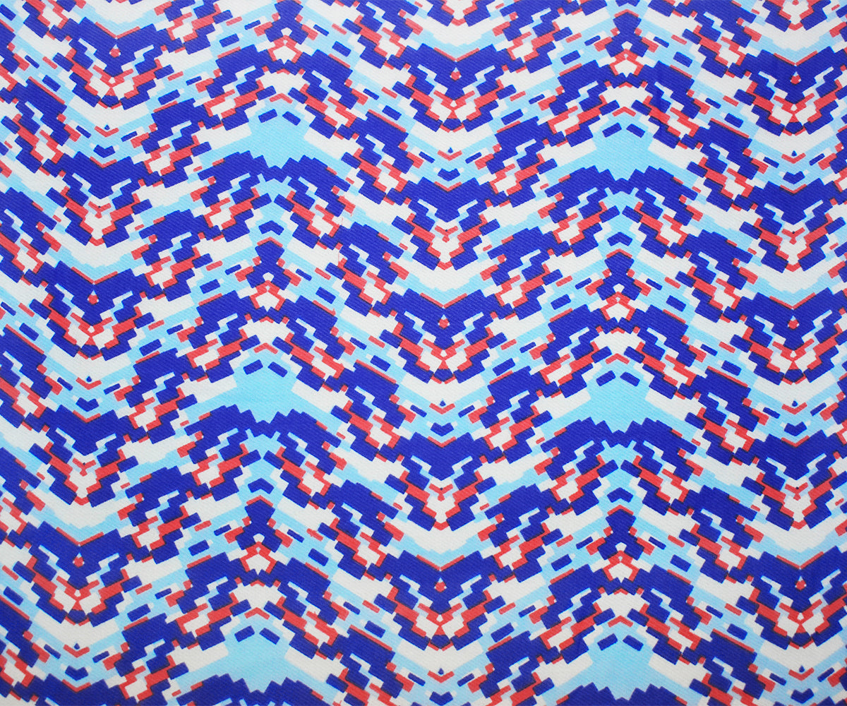 Blue-Red-White Poly Pixel Chevron Printed Chiffon Woven Fabric