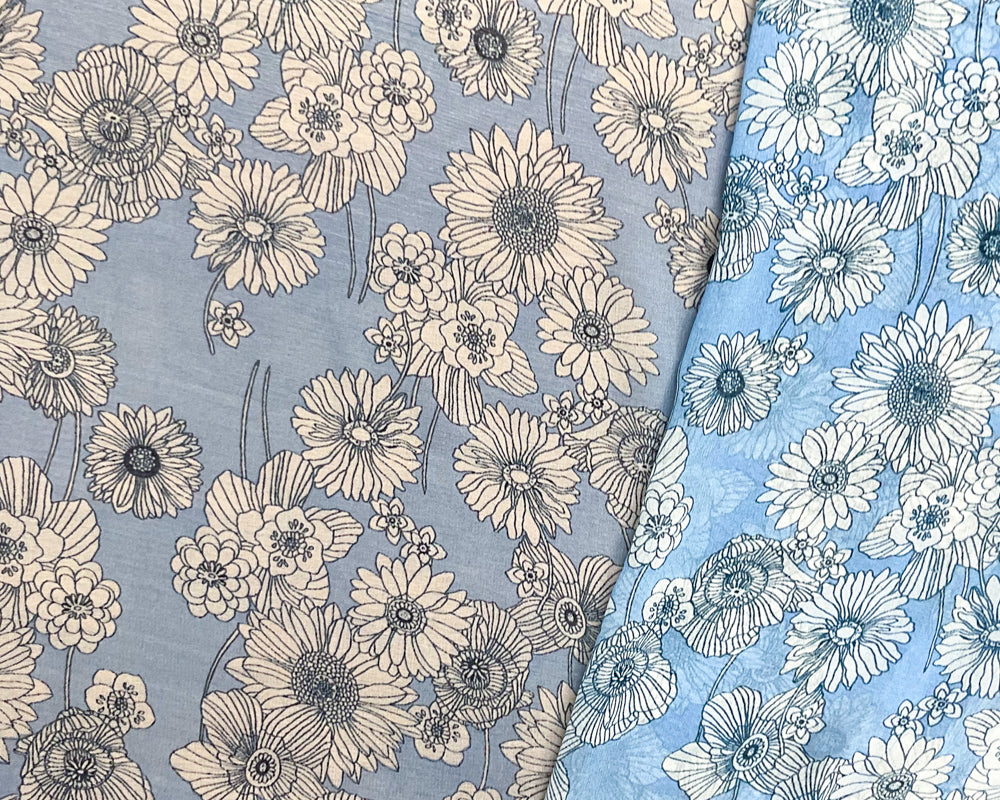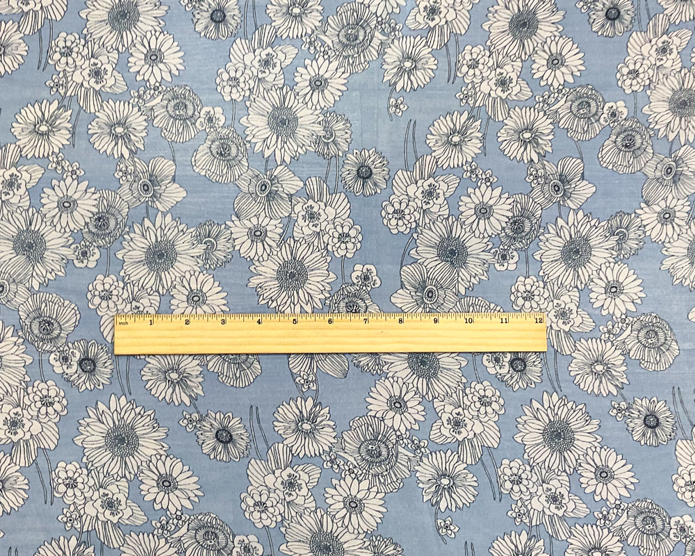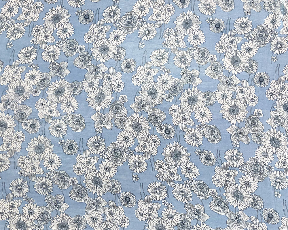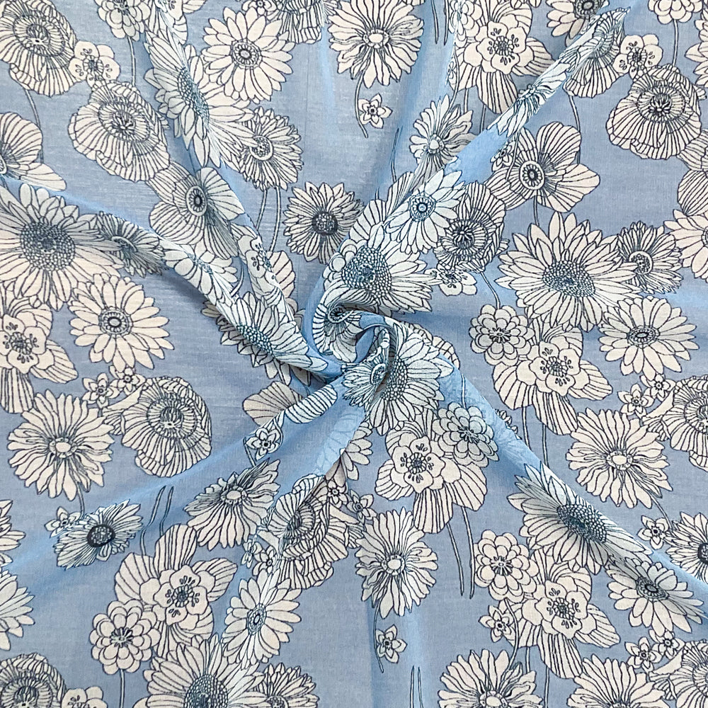 Blue-White Poly Floral Printed Chiffon Woven Fabric