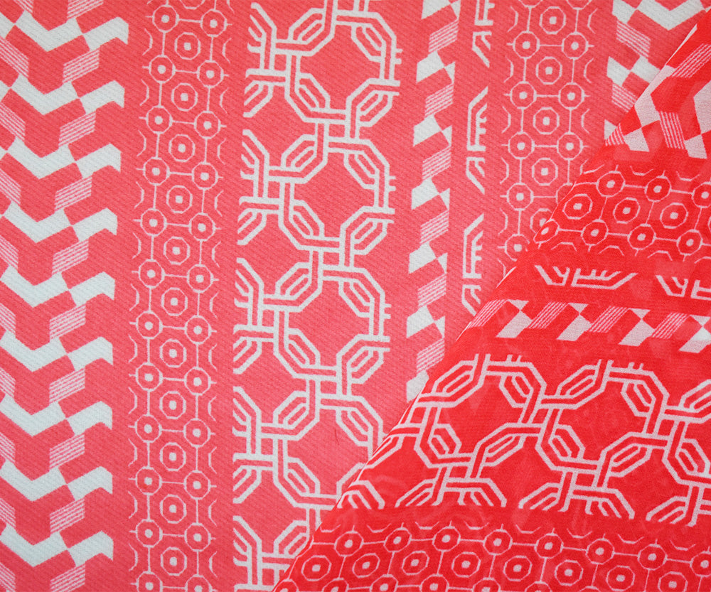 Bright Coral Red-Ivory Poly Moroccan Striped Printed Chiffon Woven Fabric