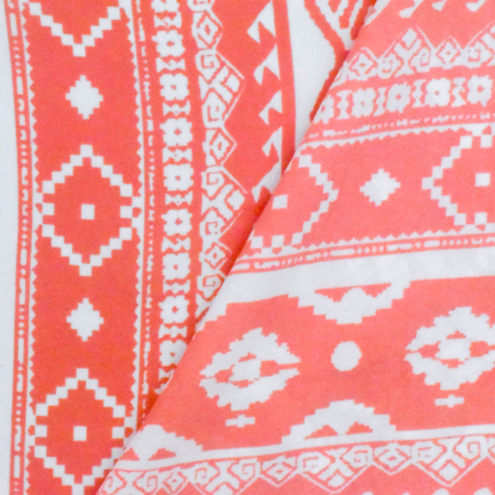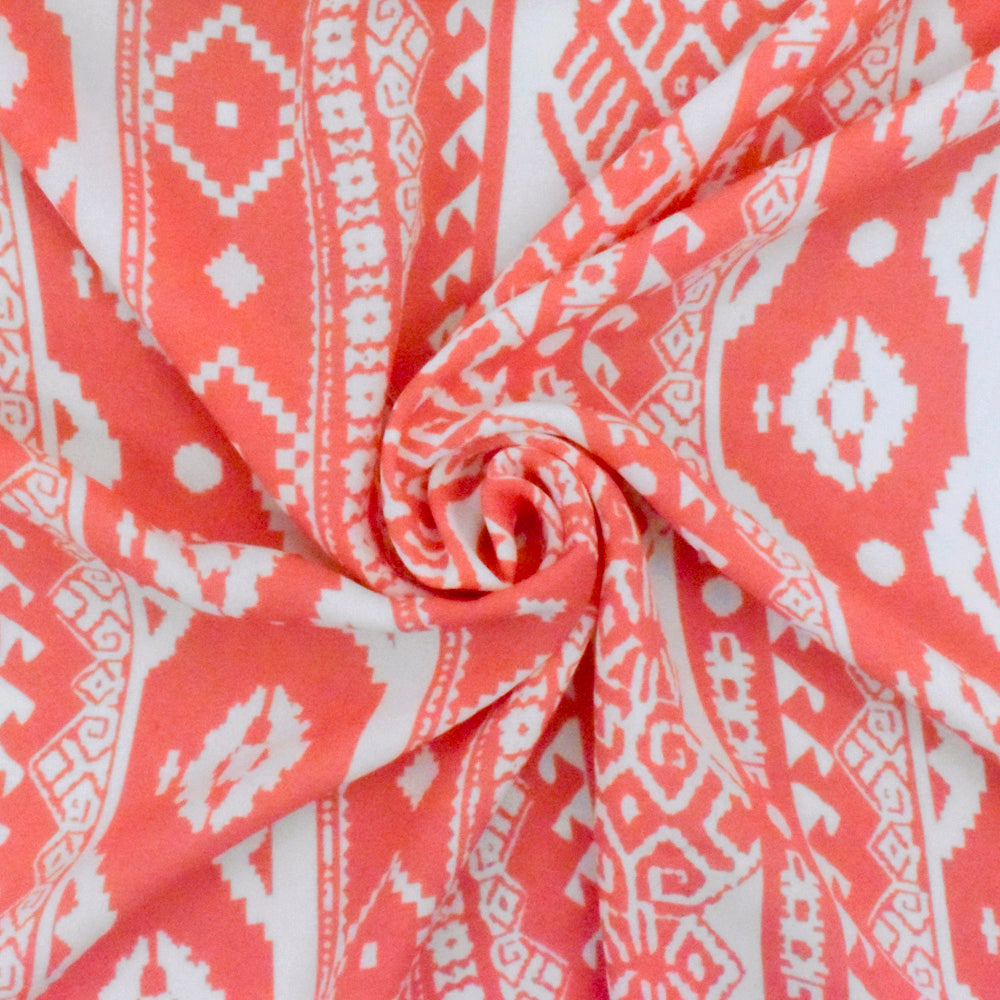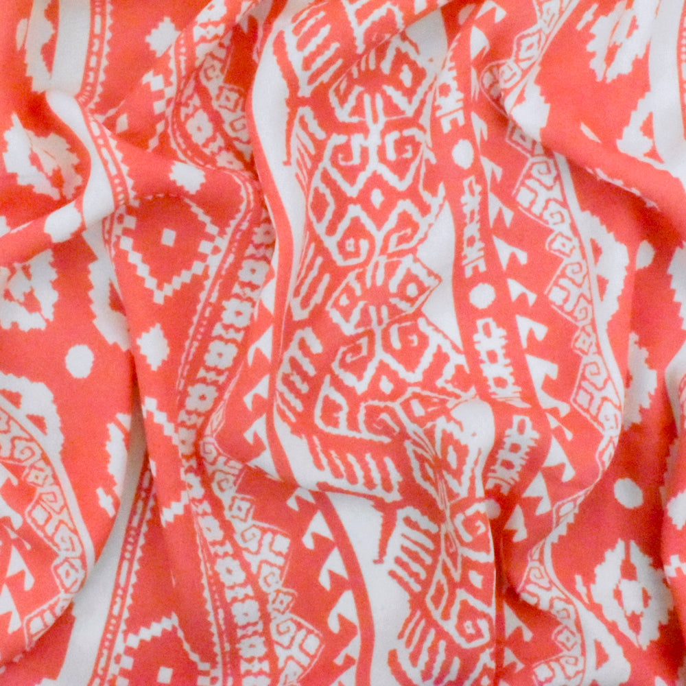Carol Pink-Ivory Aztec Printed Polyester Georgette Woven Fabric