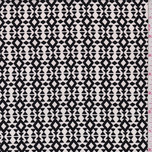 Ivory/Black Geo Diamond Pebble Crepe Fabric