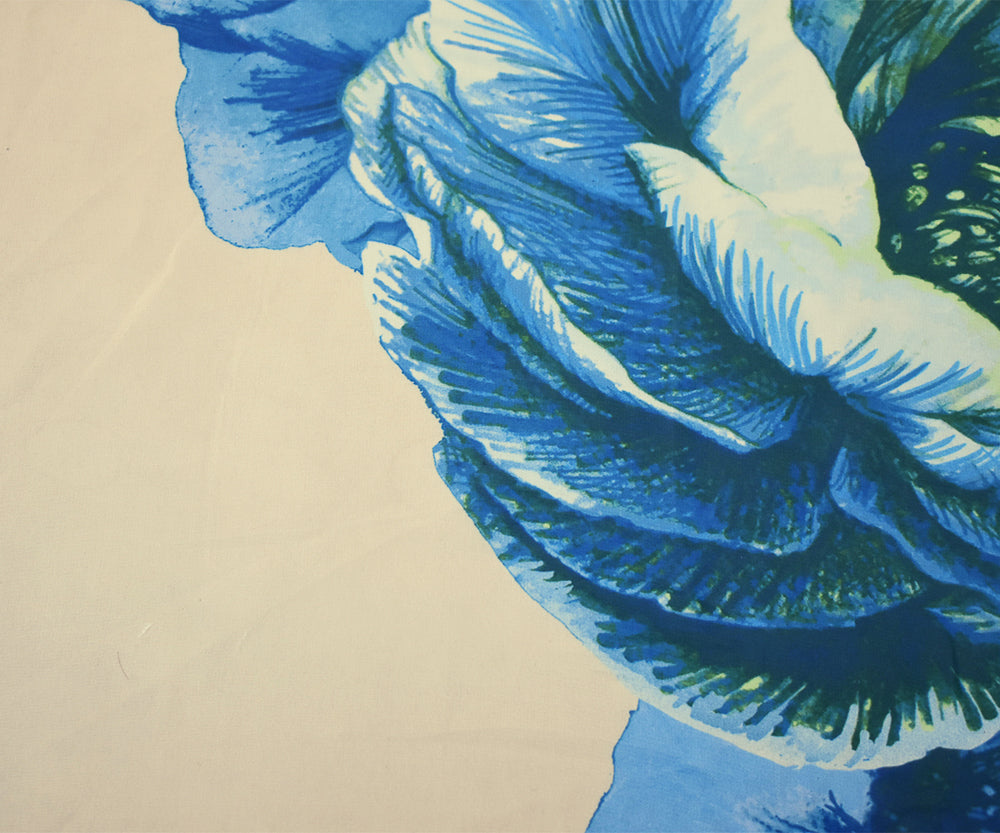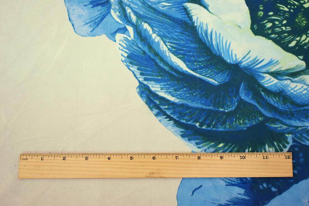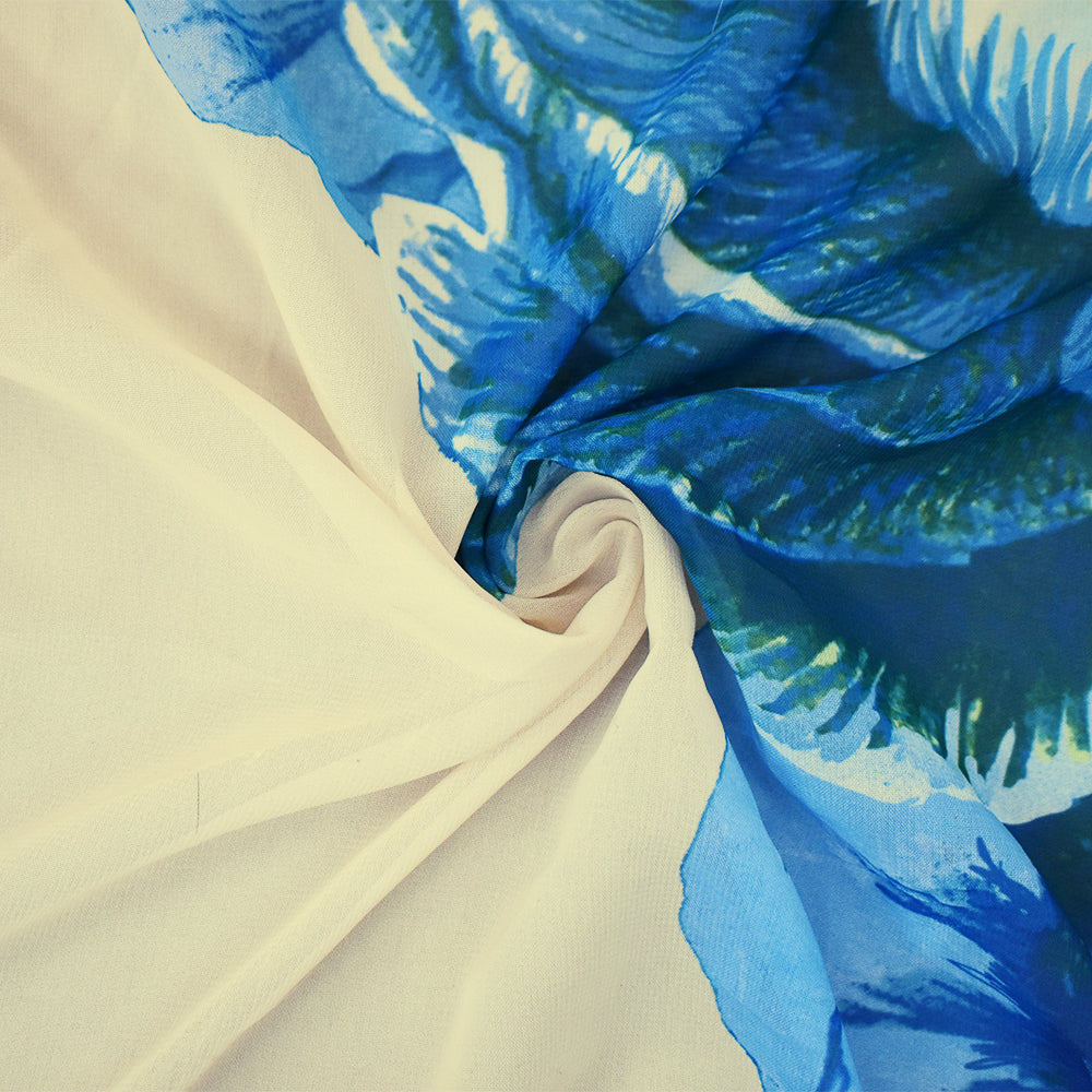 Ivory-Blue-Multi Floral Printed Poly Chiffon Woven Fabric