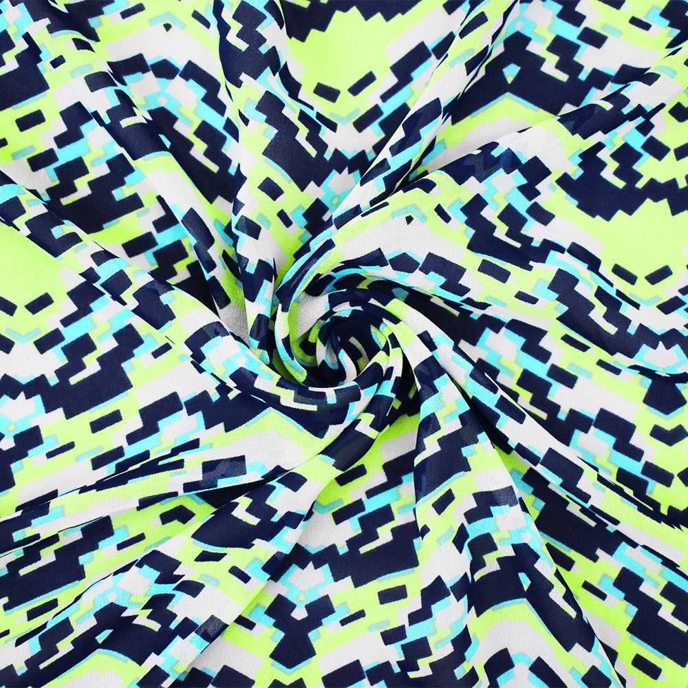 Navy-Lime Green-Multi Pixel Printed Poly Chiffon Woven Fabric