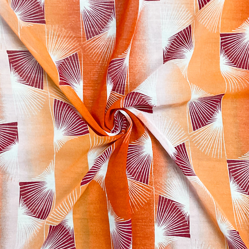 Orange-Red-White Poly Abstract Printed Chiffon Woven Fabric