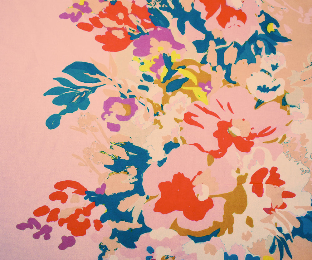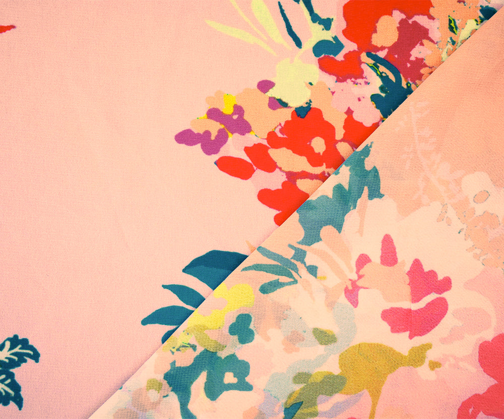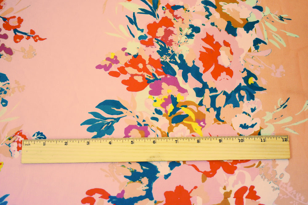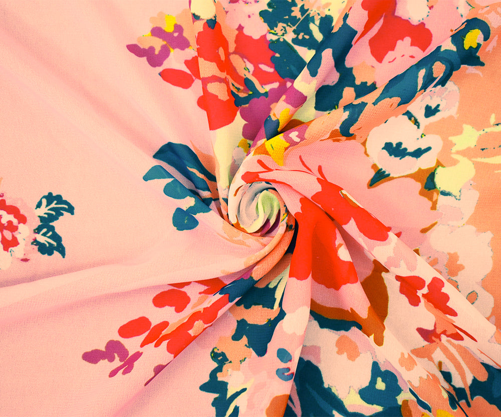 Pink-Teal-Multi Floral Printed Poly Chiffon Woven Fabric