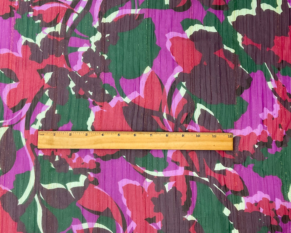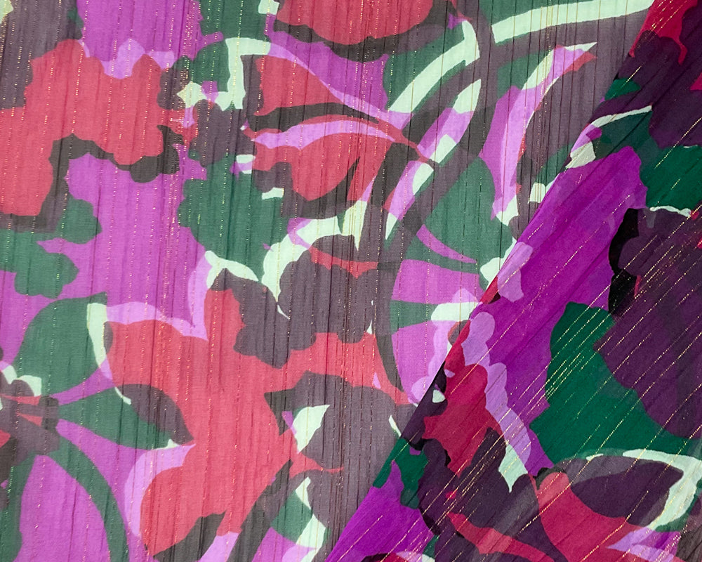 Purple-Multi Floral Metallic Printed Yoryu Chiffon Woven Fabric