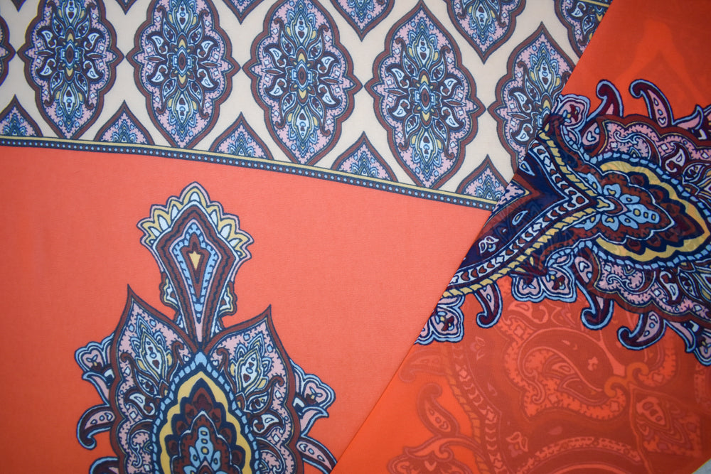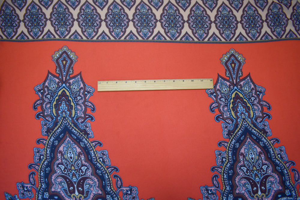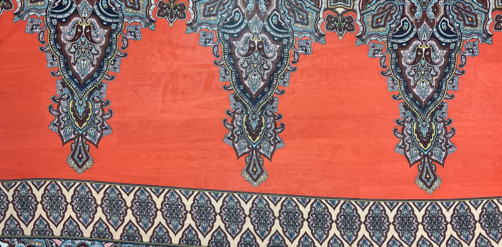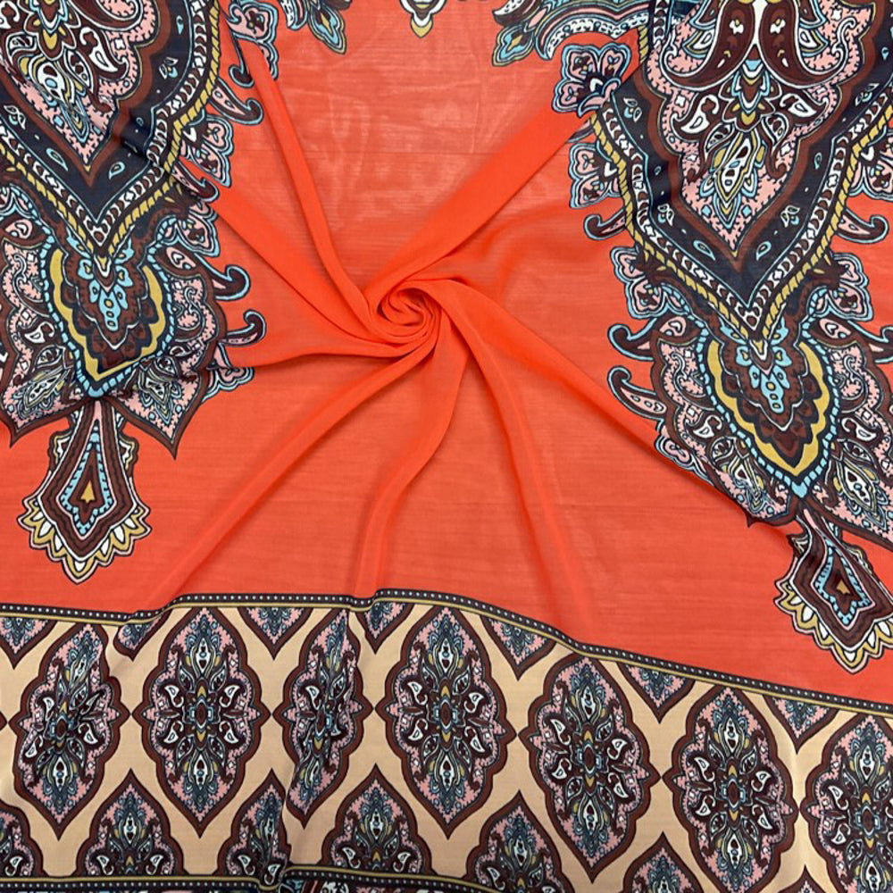 -Red-Brown-Multi Poly Baroque Border Printed Chiffon Woven Fabric