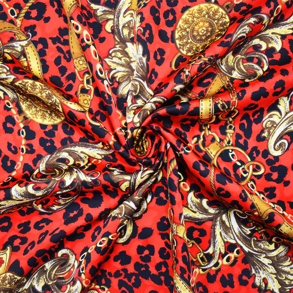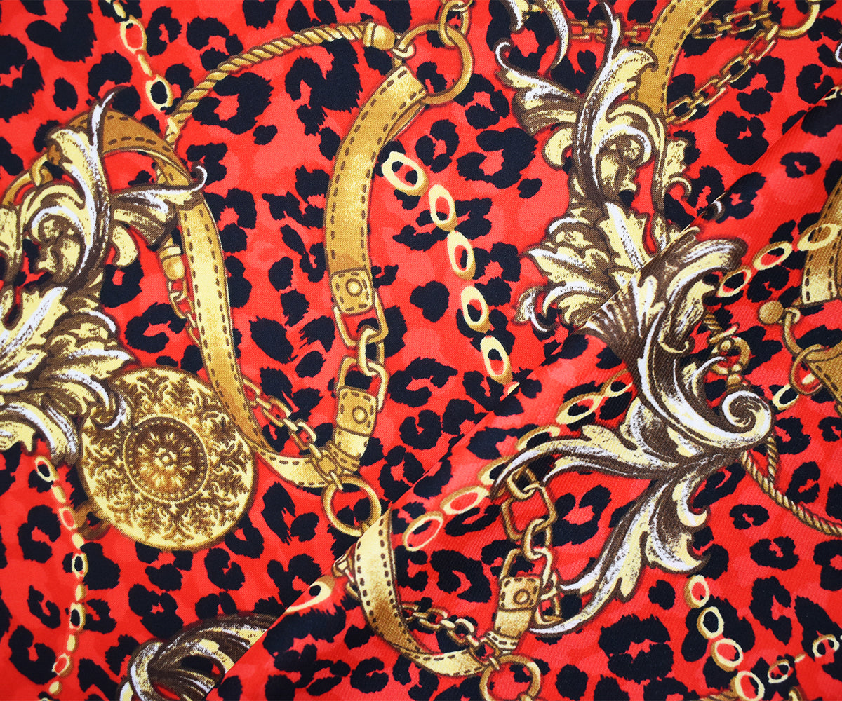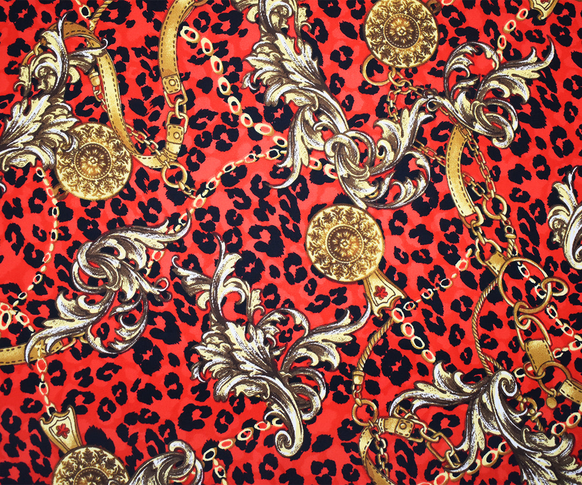 -Red-Yellow-Black Poly Baroque with Leopard Printed Charmeuse Satin Woven Fabric