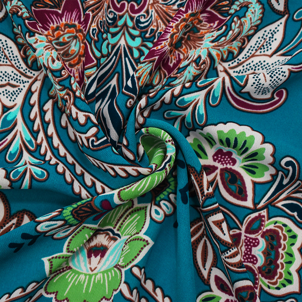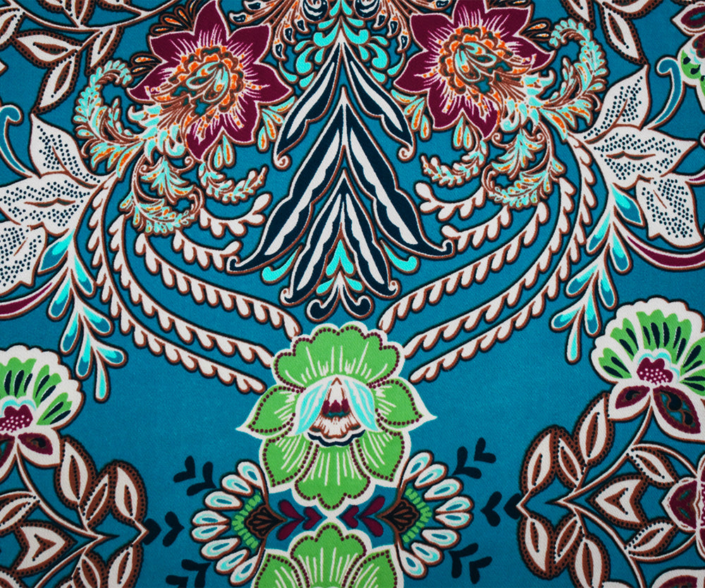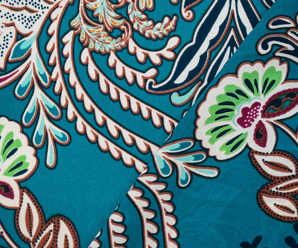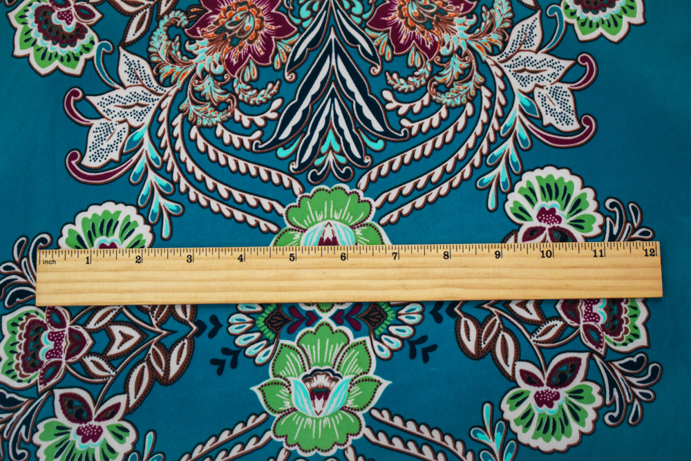 Teal-Green-Multi Poly Floral Baroque Printed Chiffon Woven Fabric