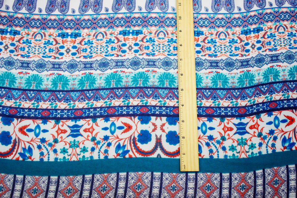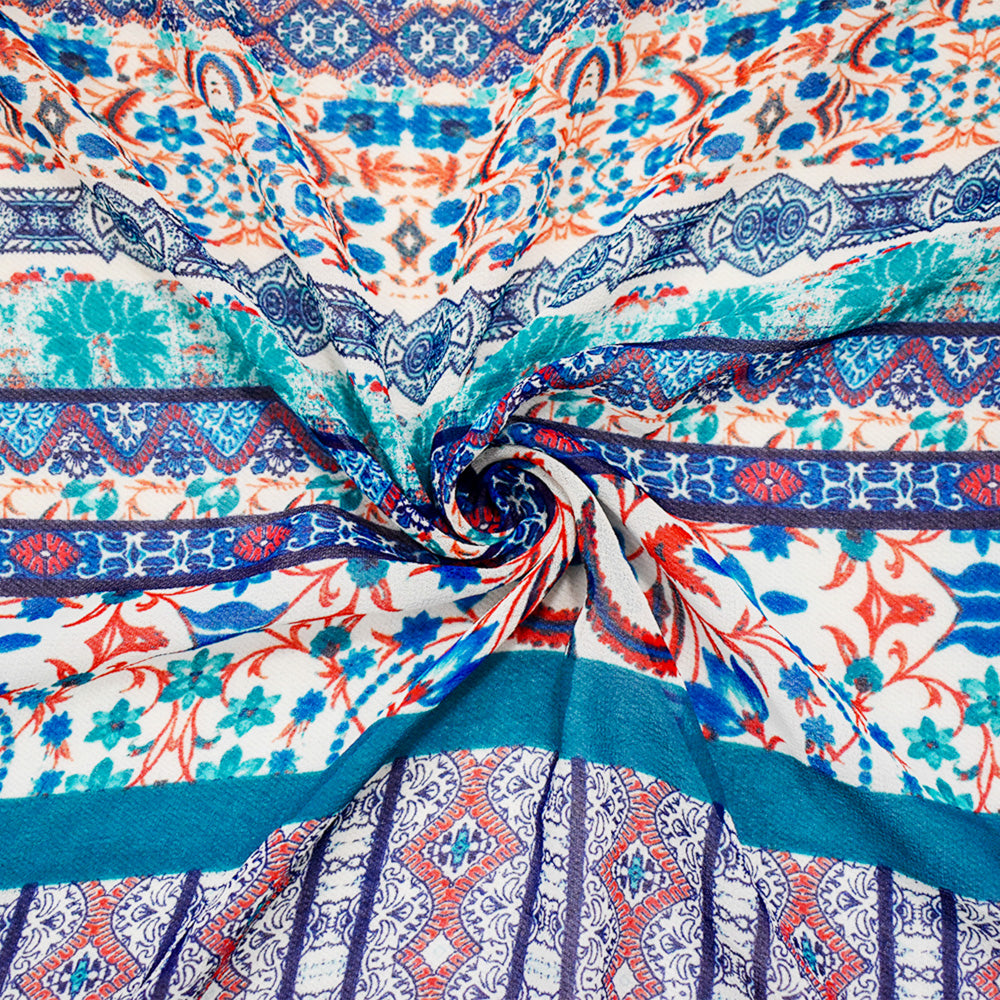 Tuquoise-Orange-Multi Multi Pattern Printed Chiffon Woven Fabric