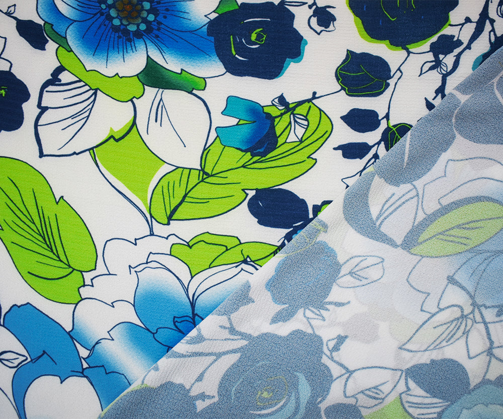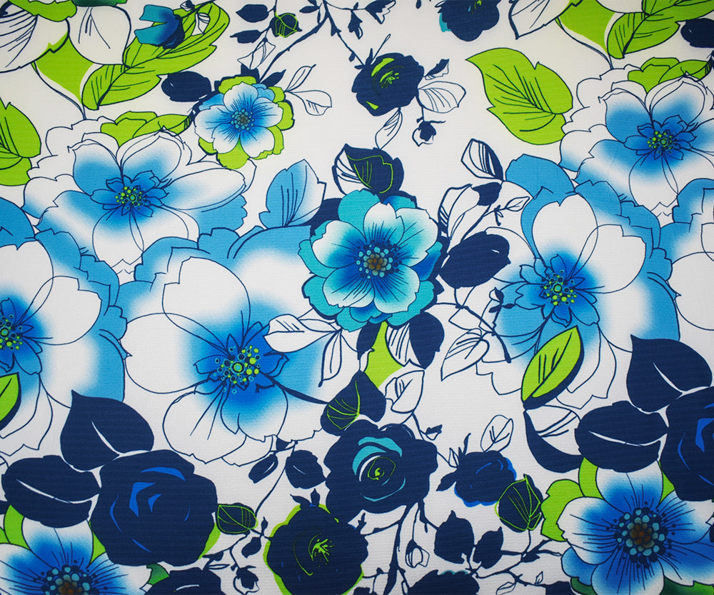 White-Blue-Multi Poly Floral Printed Pebble Crepe Woven Fabric