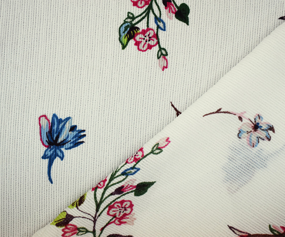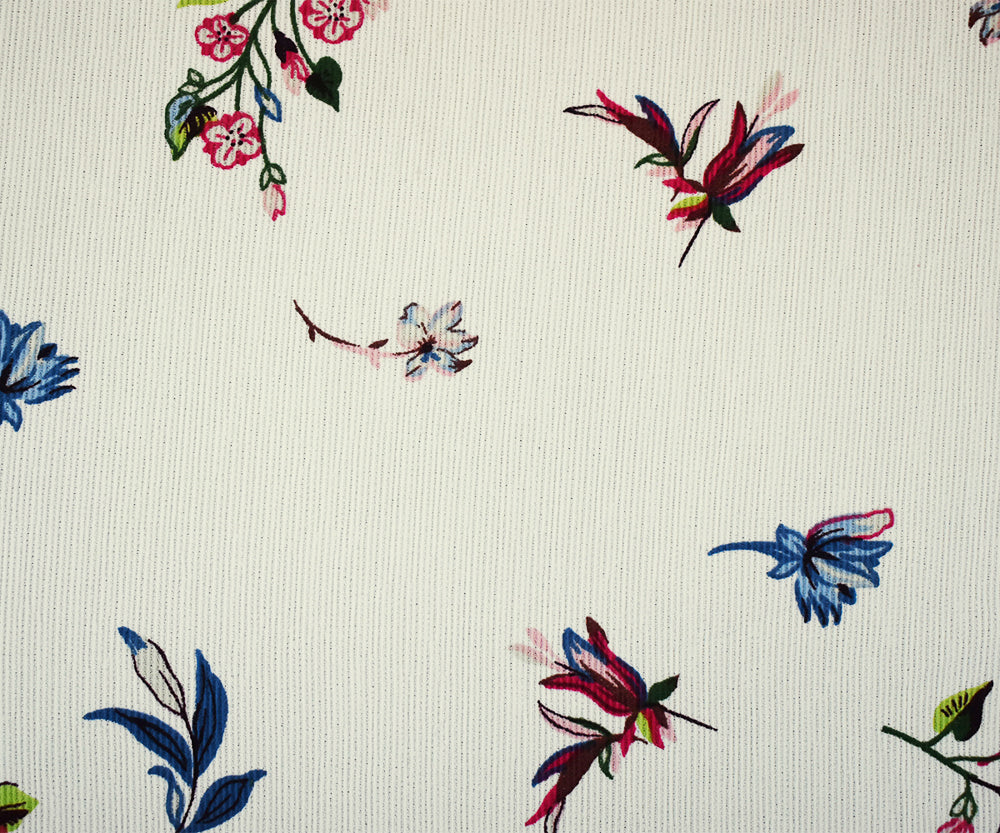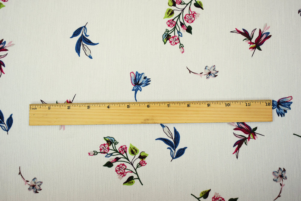 White-Pink-Multi Poly Flora Printed Dobby Semi-Sheer Striped Woven Fabric