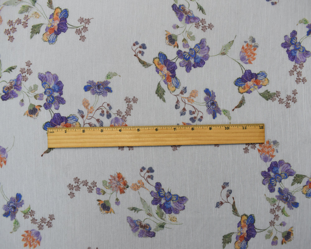White-Purple-Multi Poly Floral Printed Dobby Chiffon Woven Fabric
