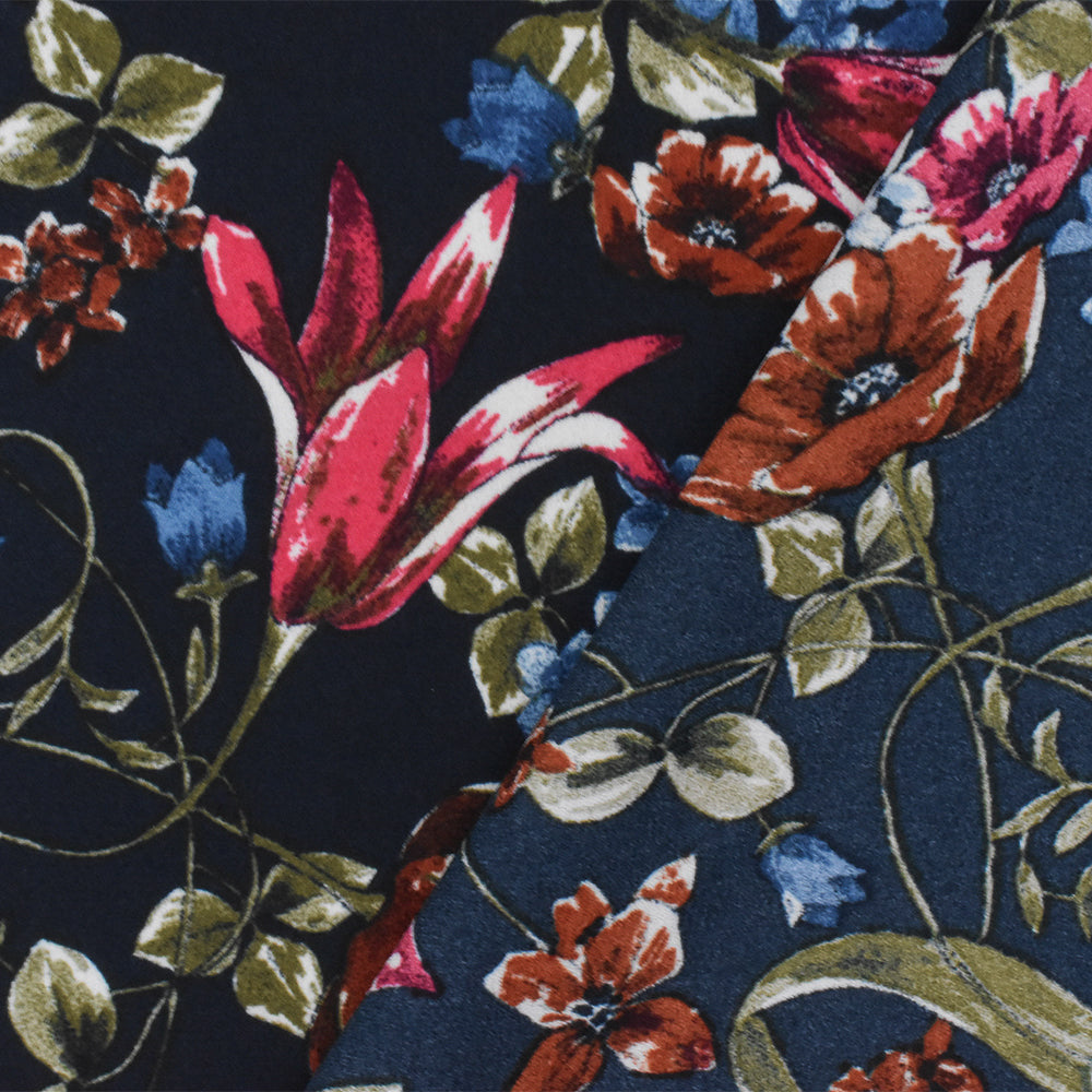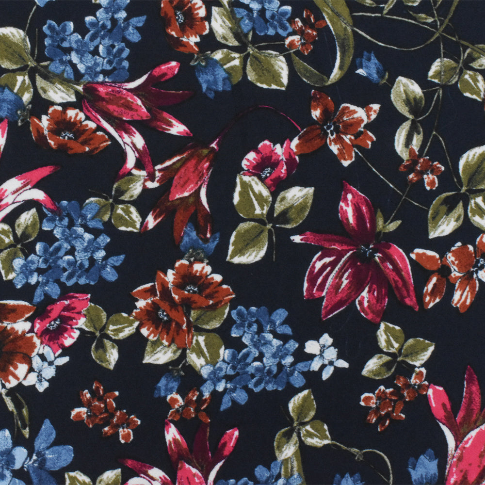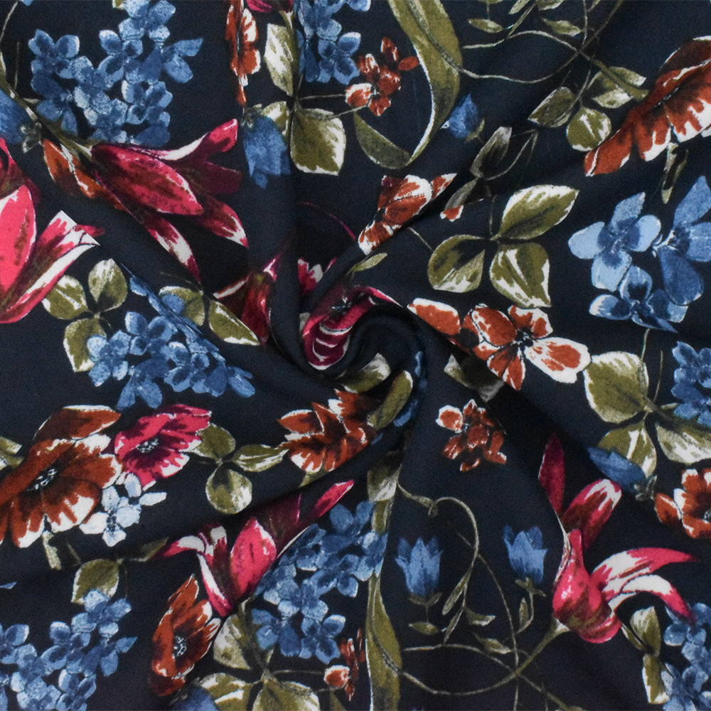 Blue-Red-Multi Floral Printed Poly Georgette Woven Fabric