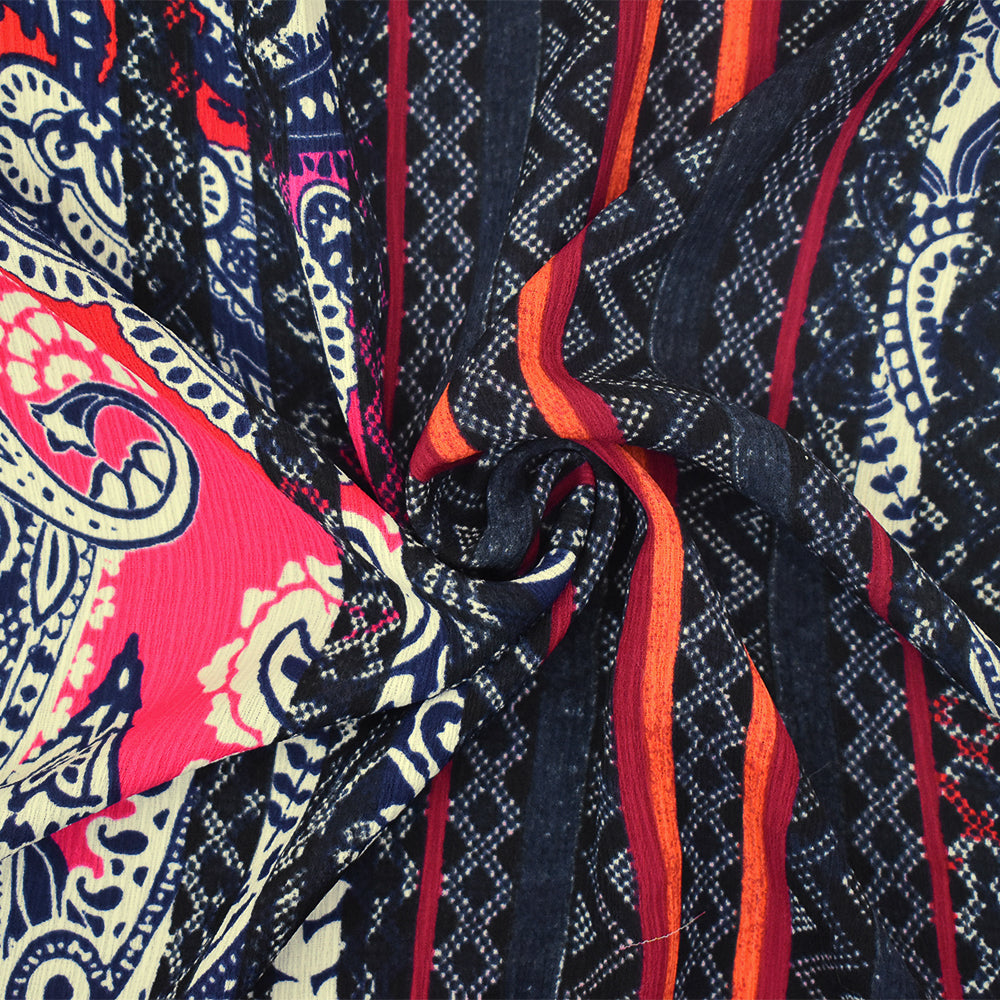 Red-Blue-Multi Paisley Border Printed Dobby Woven Fabric