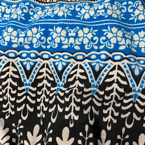 Black/Aqua/White Deco Matte Jersey Knit Fabric