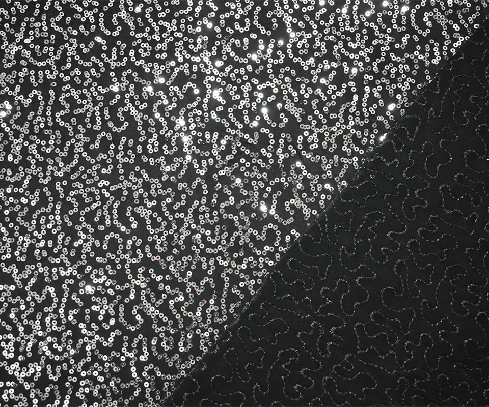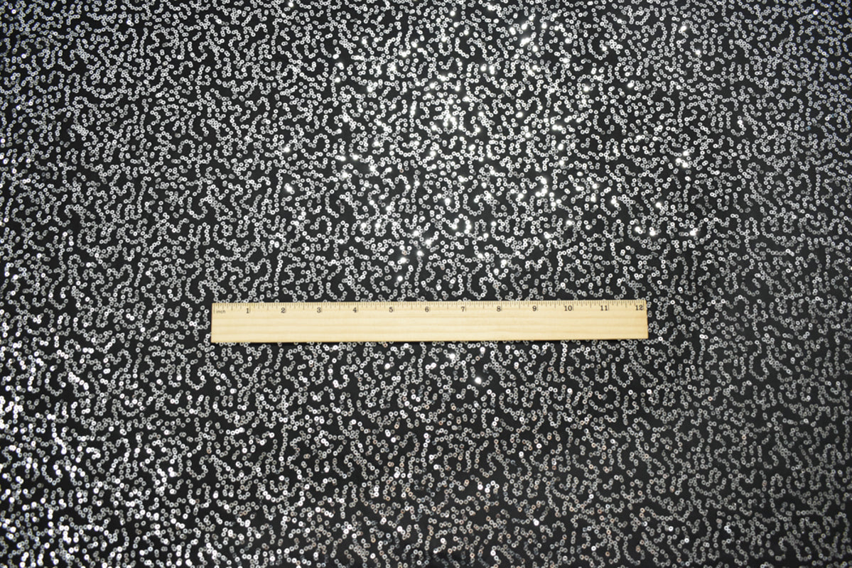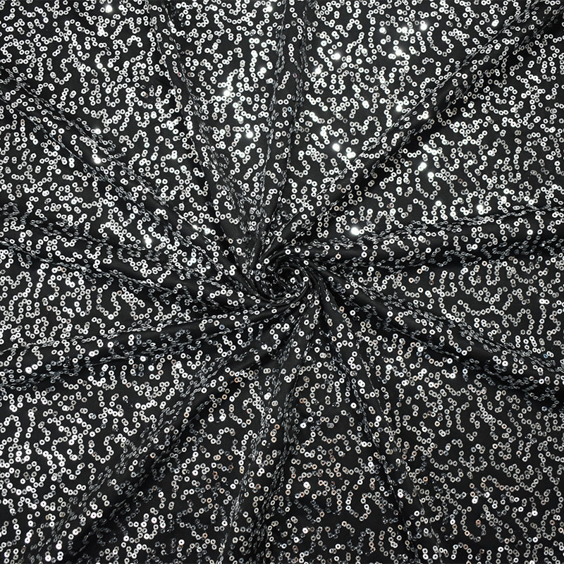 Black-Silver Coral Sequin Pattern Stretch Spandex Knit Fabric