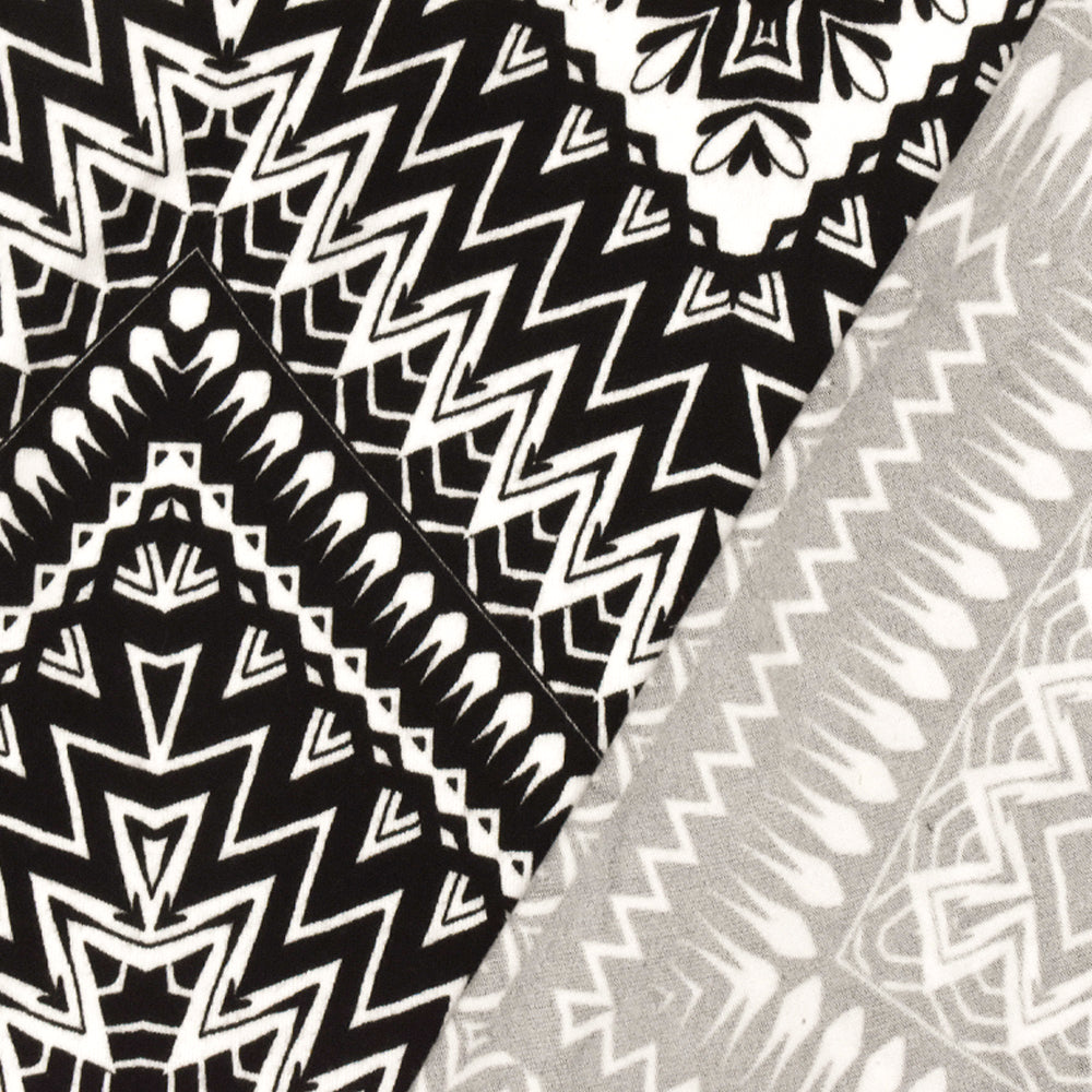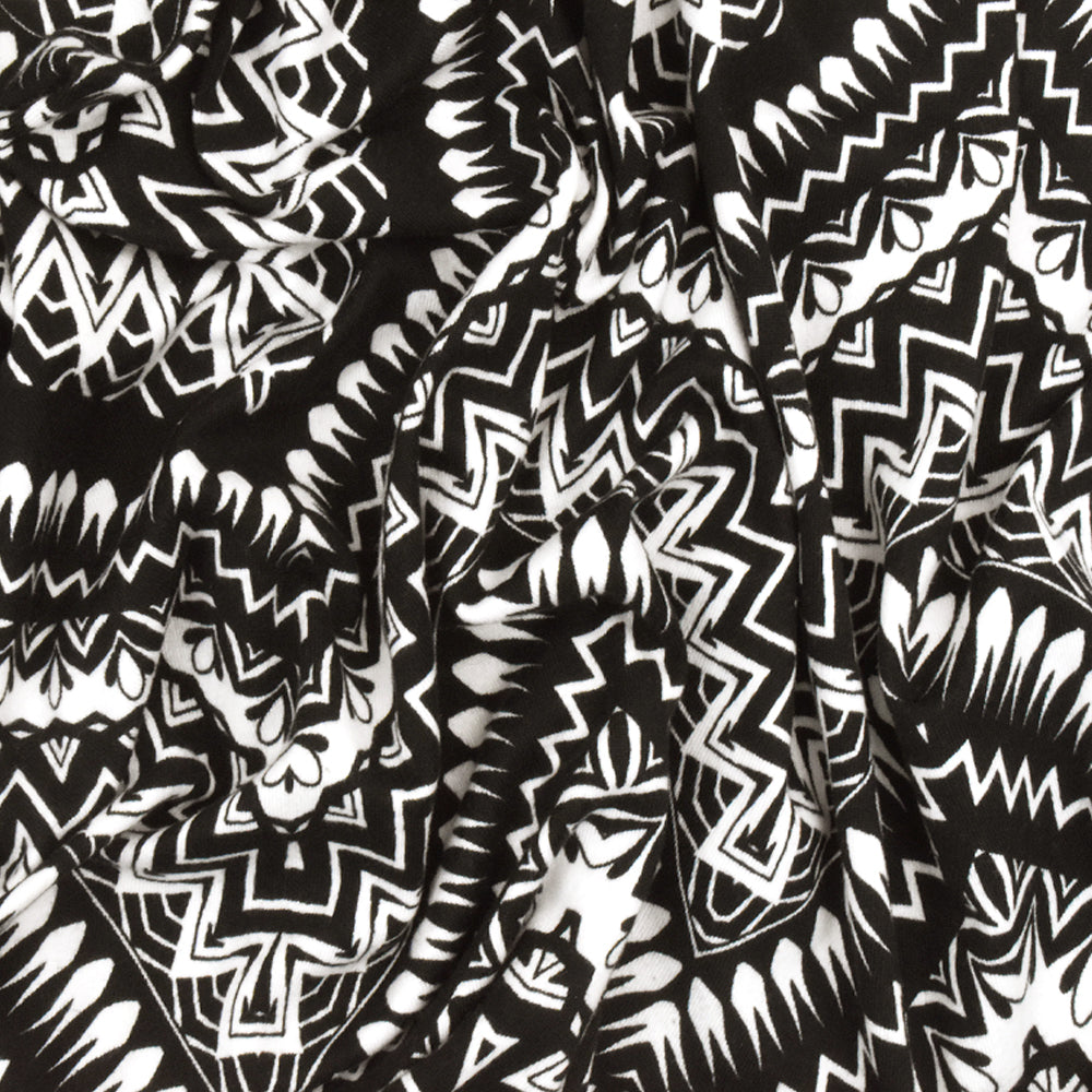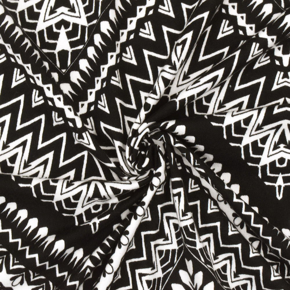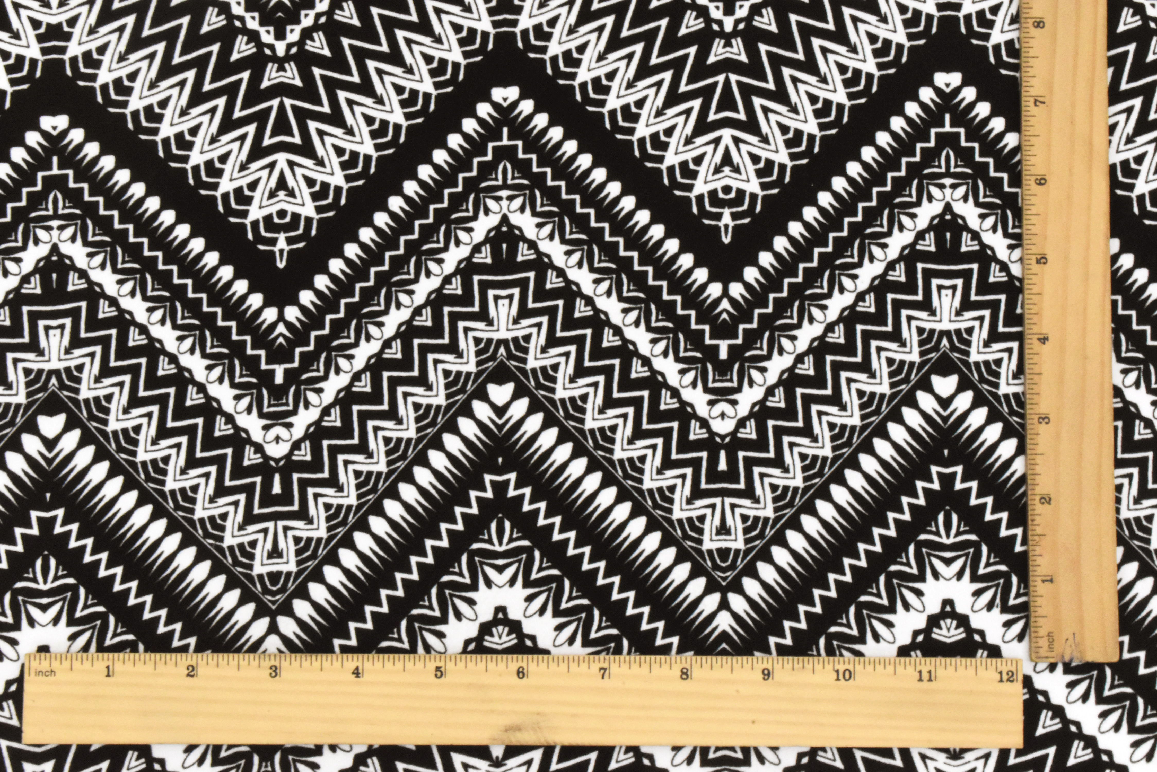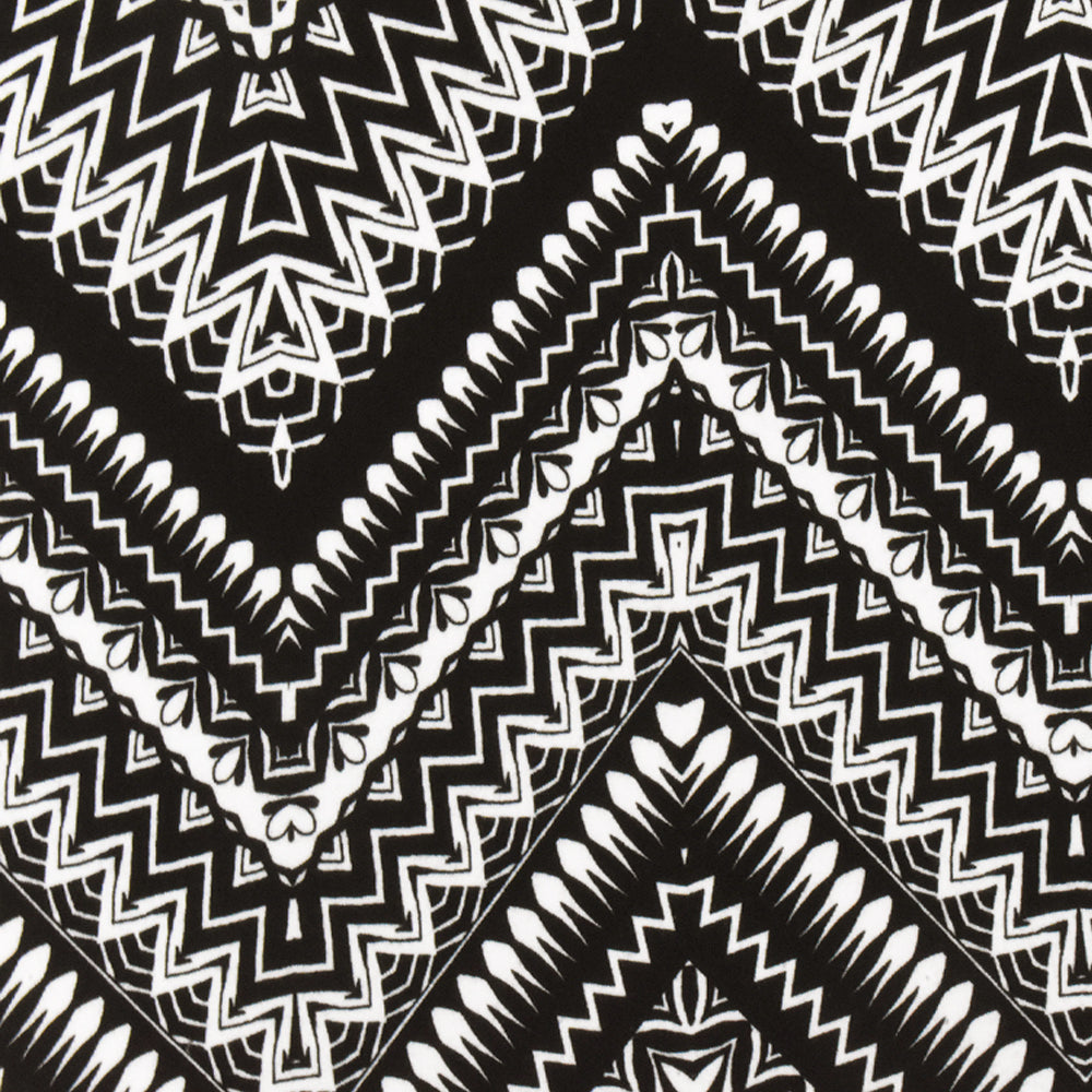Black-White Chevron Pattern Multi Print Double Brush Stretch ITY Fabric