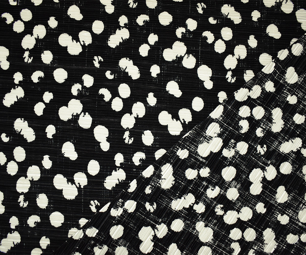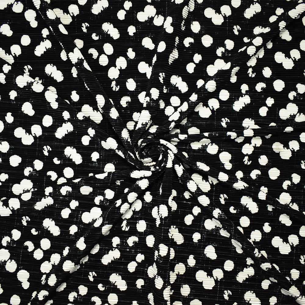 Black-White Poly Stretch Spandex Dot Print Pleated Interlock Knit Fabric